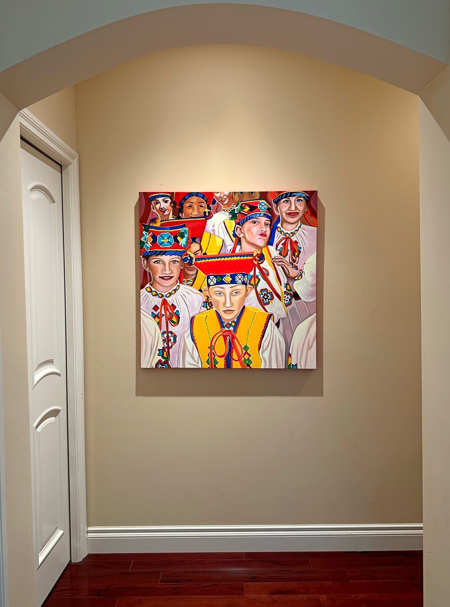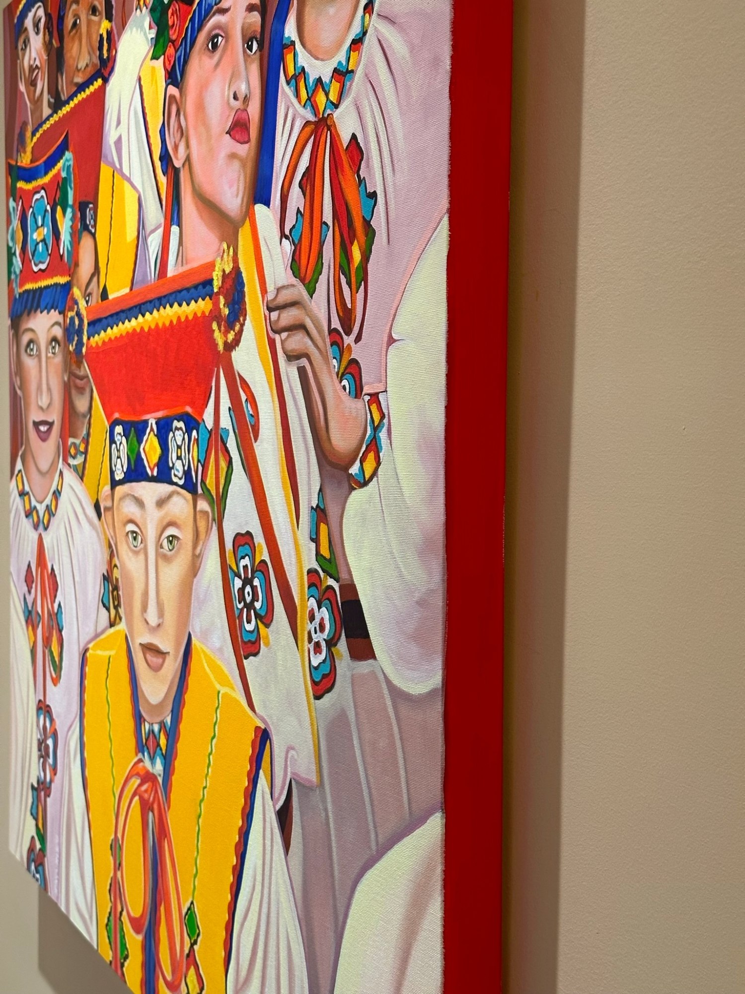 "They came from Ukraine 3 weeks ago, they keep going in Ukraine!" This painting is from a photo taken at a dance recital of Ukrainian and Ukrainian Canadian children in Edmonton. Shumka dancers! I was so taken with the photo and the beaming faces and colors - joy and peace from Ukraine.