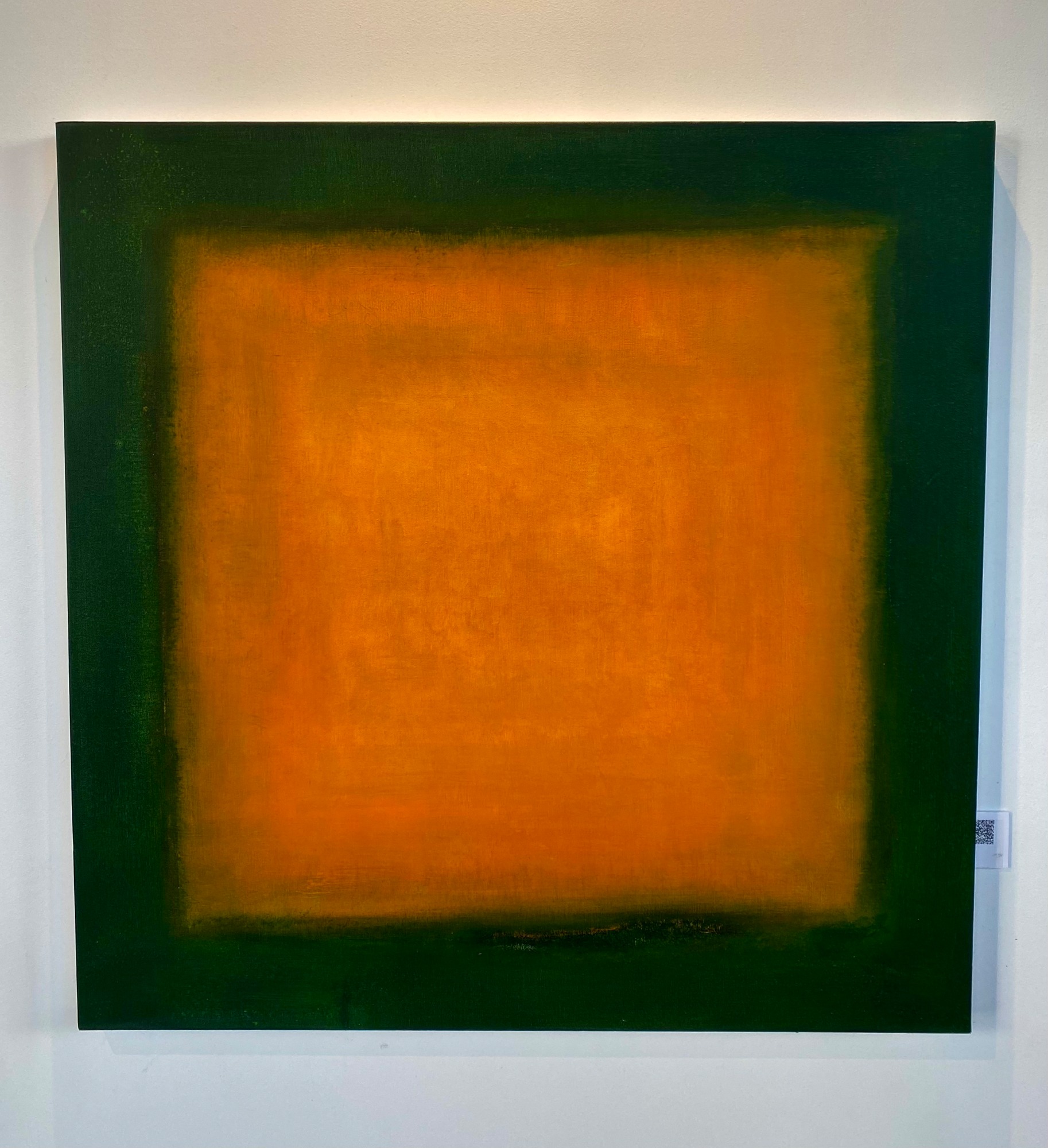 I want a painting to invite the viewer to move into the space and be surrounded by color and the feeling that the color evokes. The orange is bordered by a deep blue green.