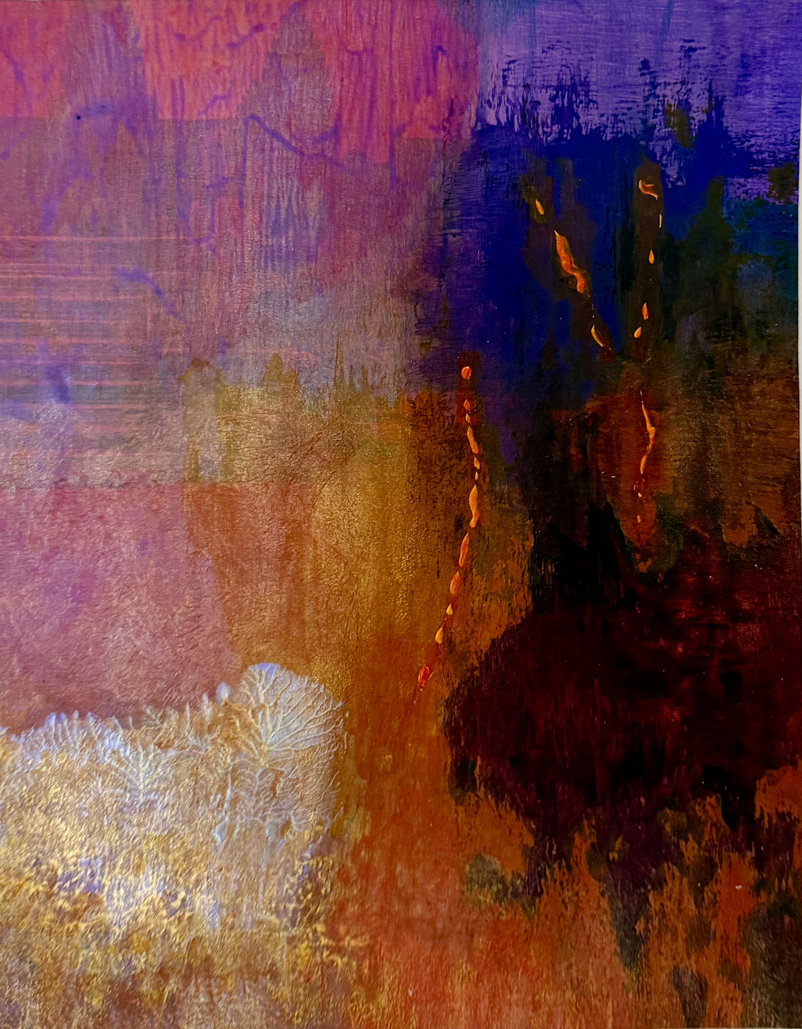 In this series I'm layering saturated tones on luminescent colors to create depth and invitation to participate in the paintings. Gentle transitions between colors highlight the tranquility and mystery of this atmospheric phenomenon, offering a sense of sublime tranquility amidst cosmic forces.
