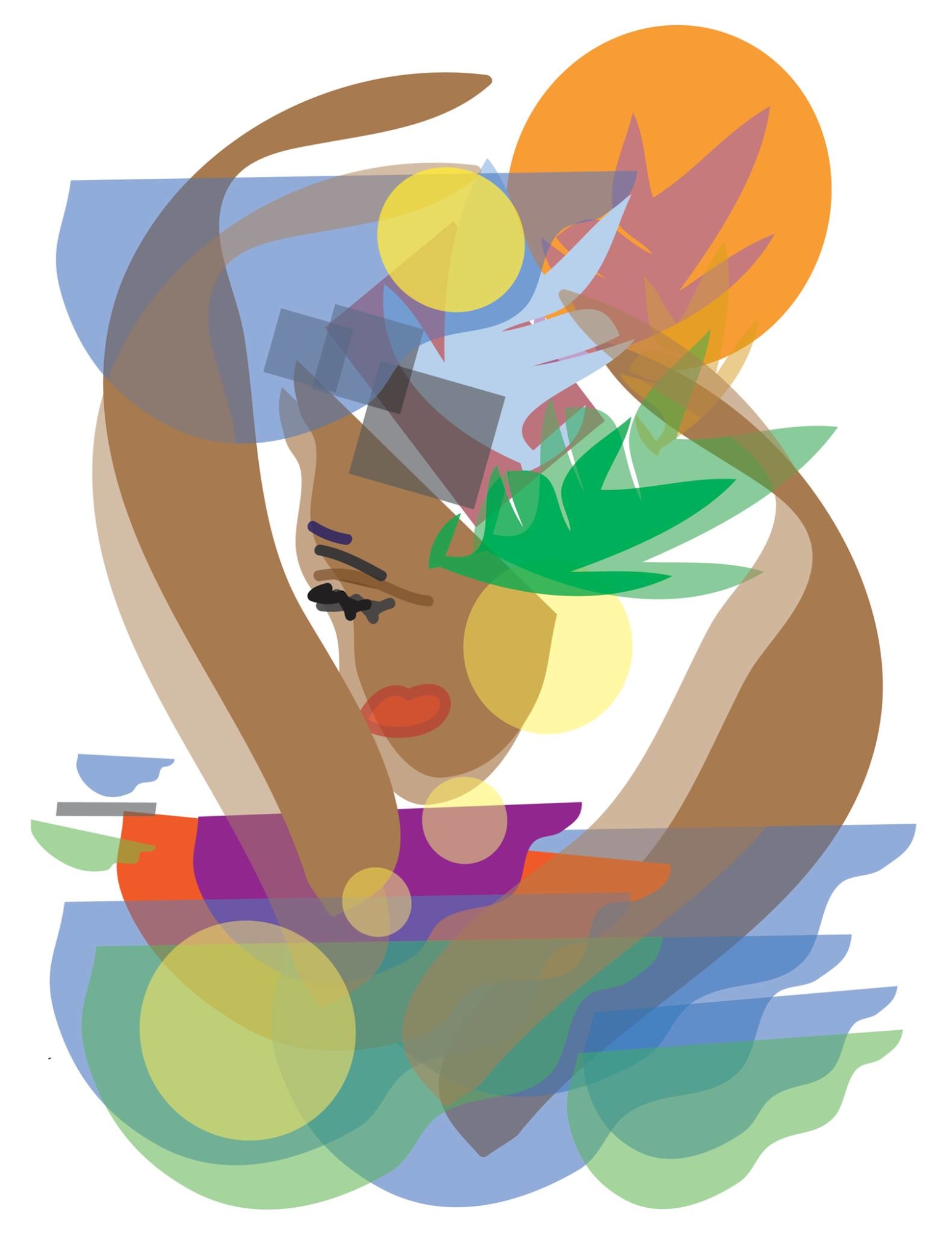 My Aunt Mary loves this, and so I think of her whenever I see it. My Aunt used to own a travel business and loved going to the Caribbean islands. I play with light and transparent overlays to capture the feeling of heat, movement, and merriment.