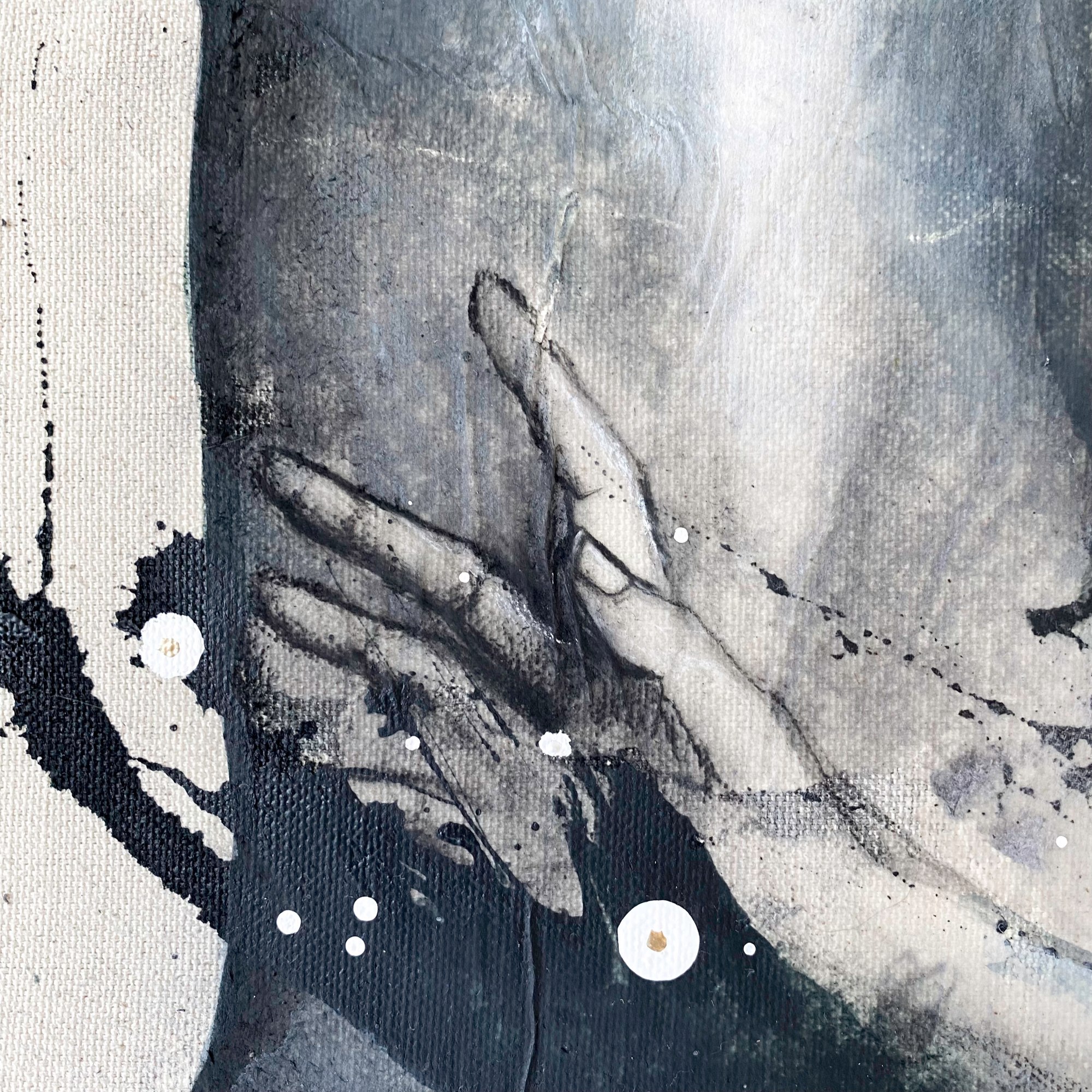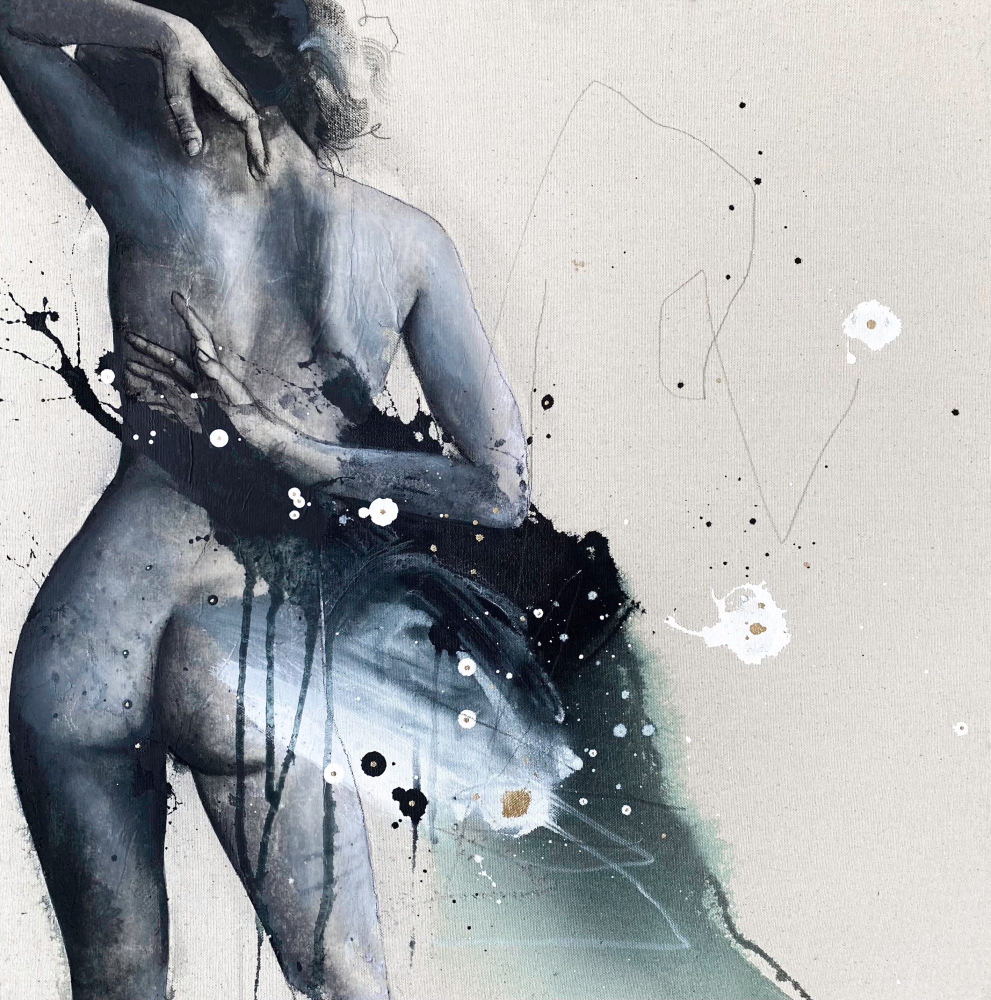 "In Line" and it's companion piece "Out of Line" are made from my photographs which I collaged onto the canvas. I then drew back on top of the work and integrated acrylics. The two pieces are commentary on what the male viewer and overarching society views as acceptable forms of nudity. The pair of paintings fall under "The New Body" series which is a reflection of self-sexualization and female veneration.