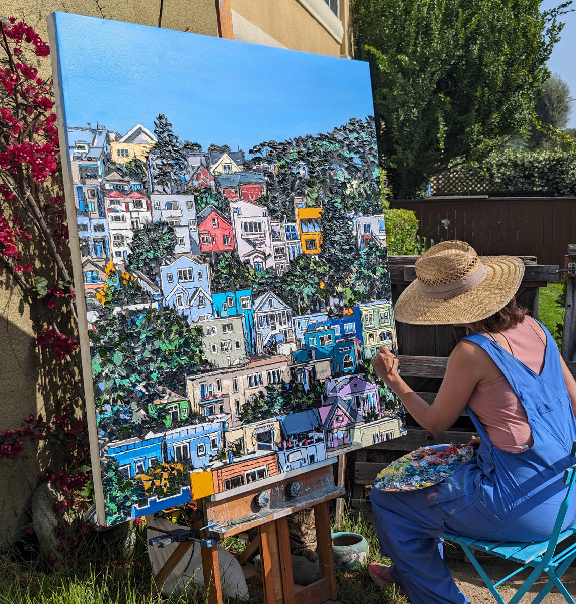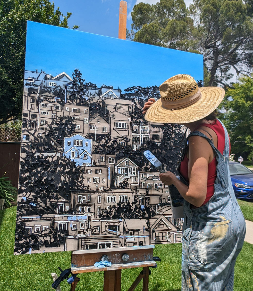 Based in Los Angeles, CA, I paint cityscapes & coastal scenes that record the connections between people as witnessed in a moment.