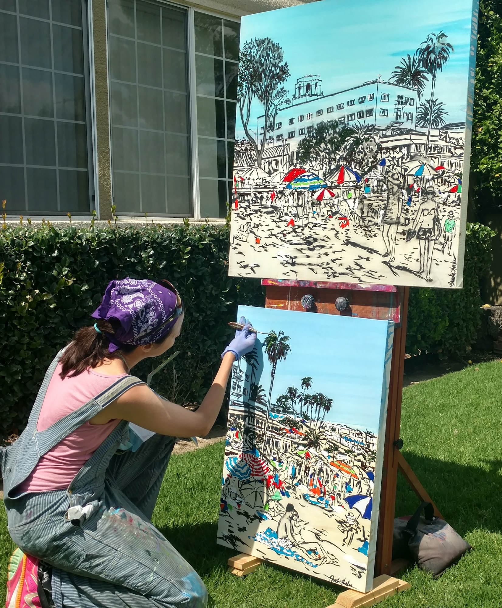 Based in Los Angeles, CA, I paint cityscapes & coastal scenes that record the connections between people as witnessed in a moment.