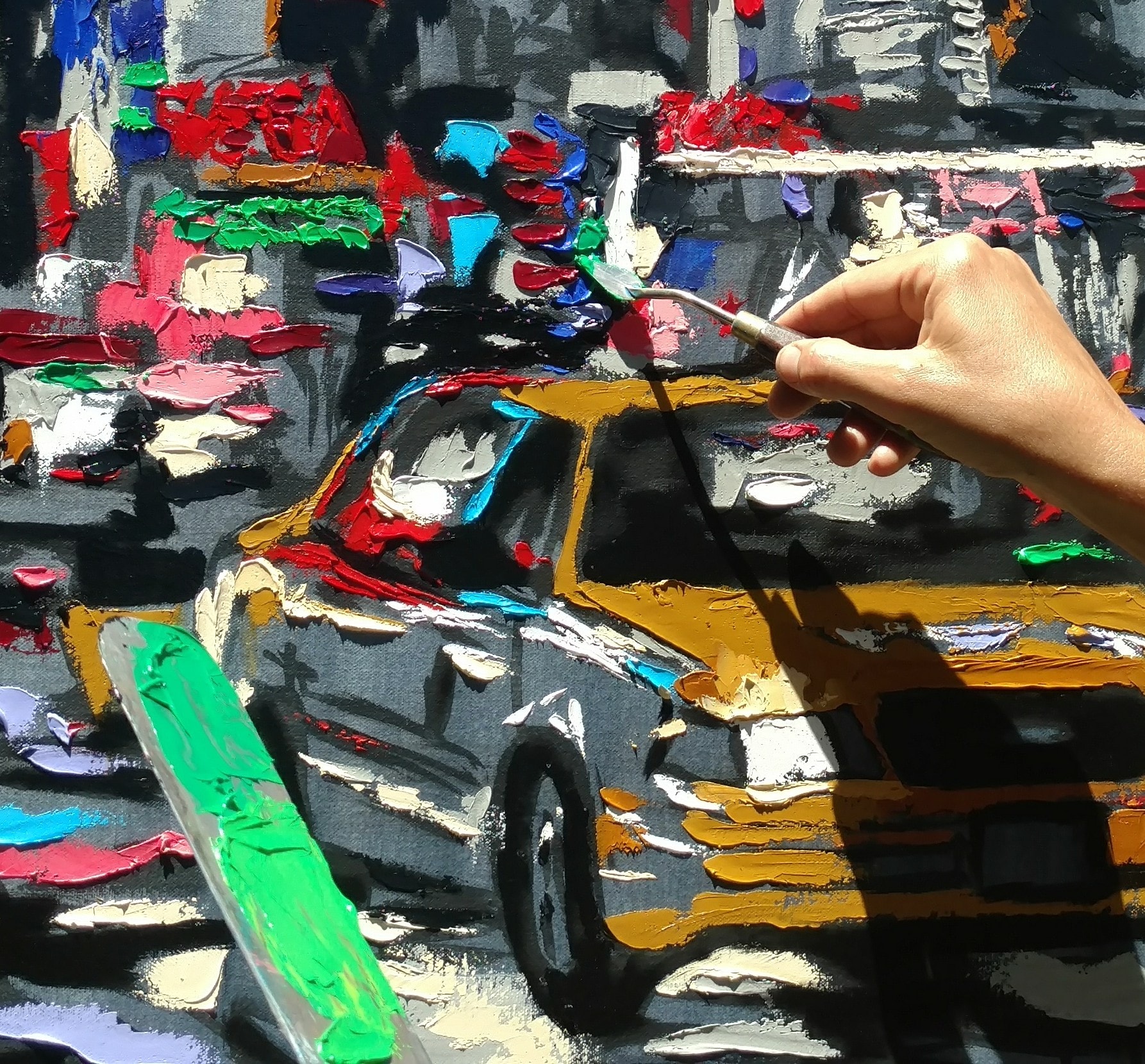 Based in Los Angeles, CA, I paint cityscapes & coastal scenes that record the connections between people as witnessed in a moment.