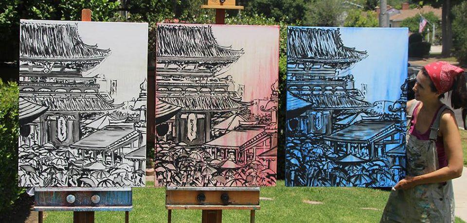 Based in Los Angeles, CA, I paint cityscapes & coastal scenes that record the connections between people as witnessed in a moment.