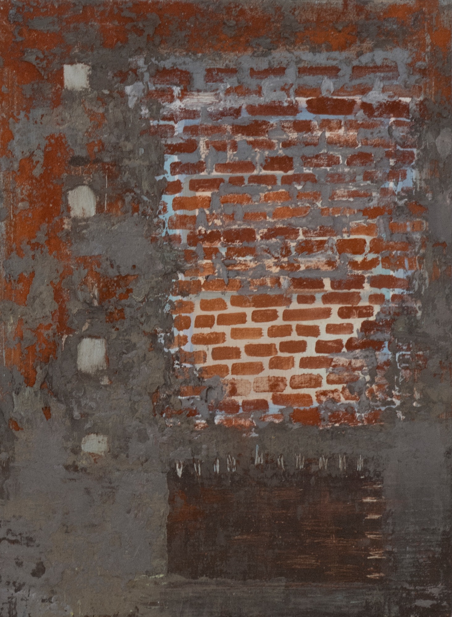 brick, oil, and wax on panel