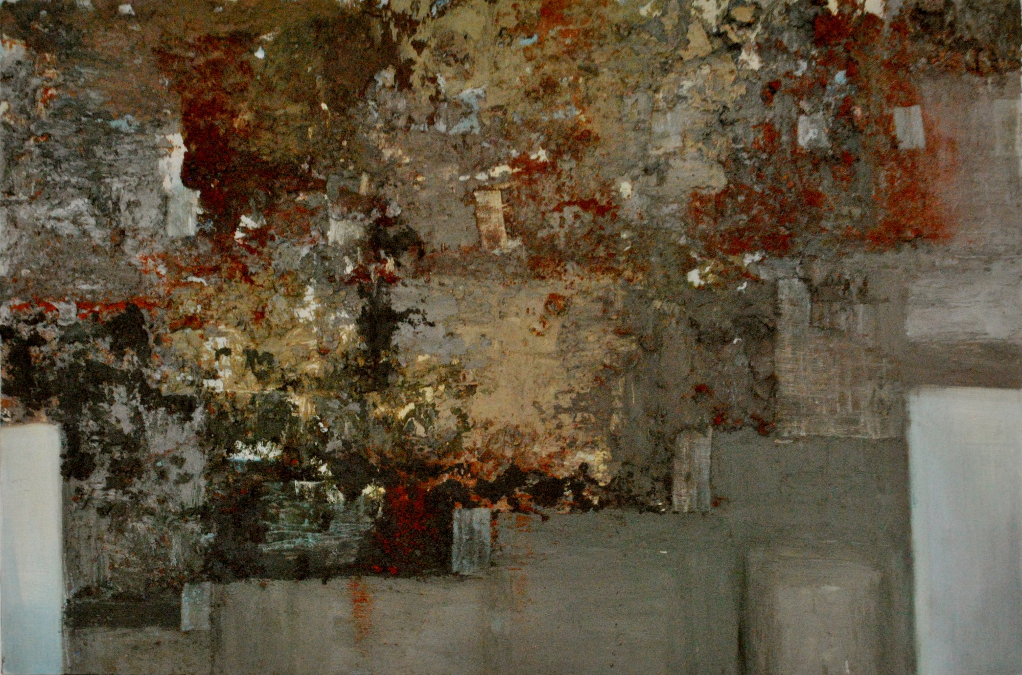 brick, oil, and wax on panel