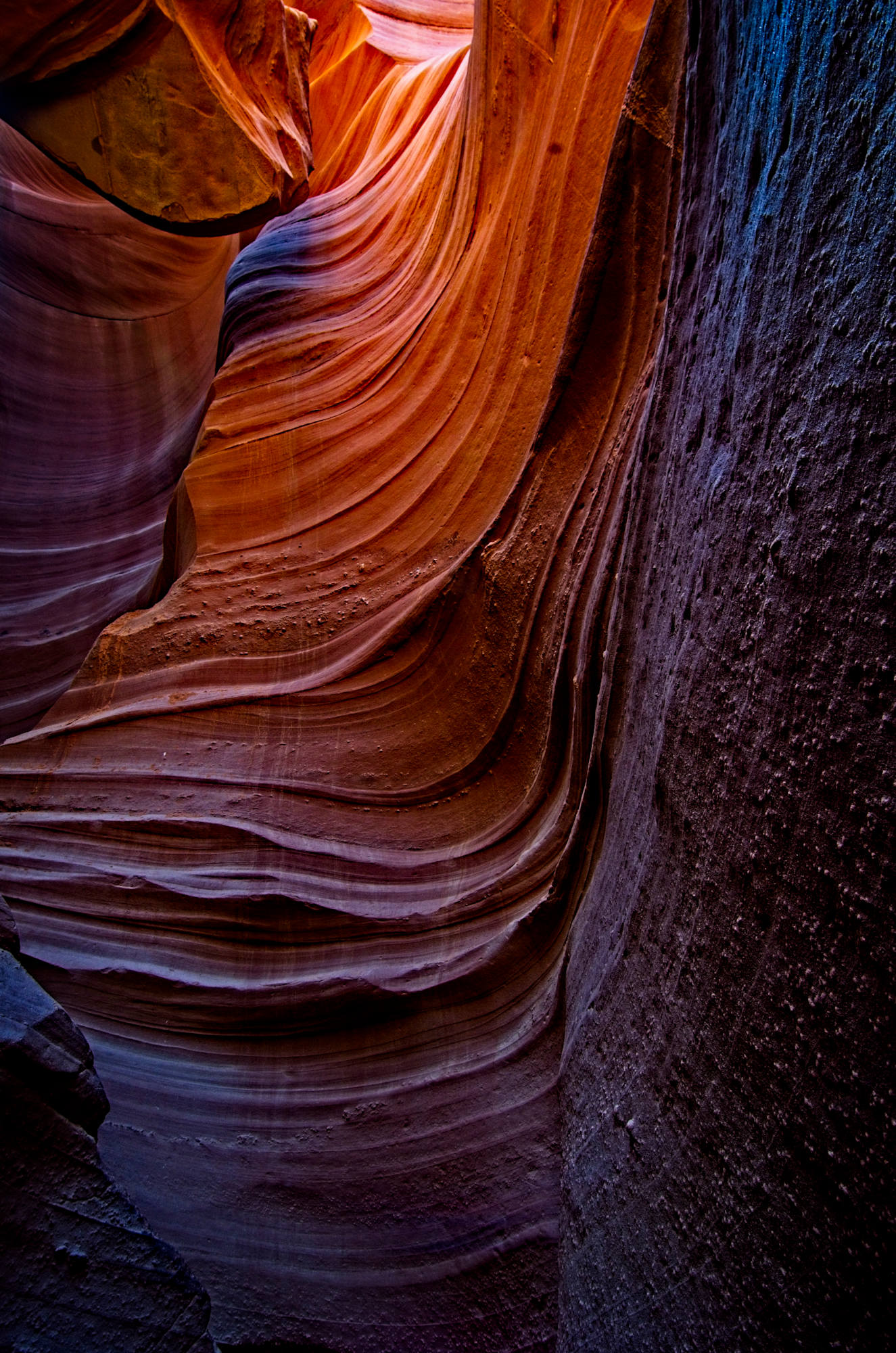 This photograph of light flowing into a slot canyon outside Page, AZ, USA, is available as a signed limited-edition physical print (printed on archival giclée paper), mounted to a backing board, and framed.