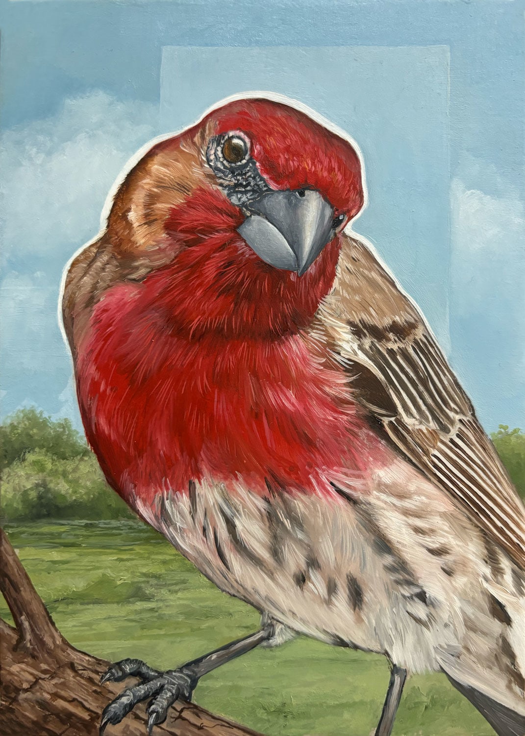 This painting was part of a small series featuring birds in a landscape setting. At the time I was thinking of Renaissance era landscapes, and so imagined these local birds in a European setting.