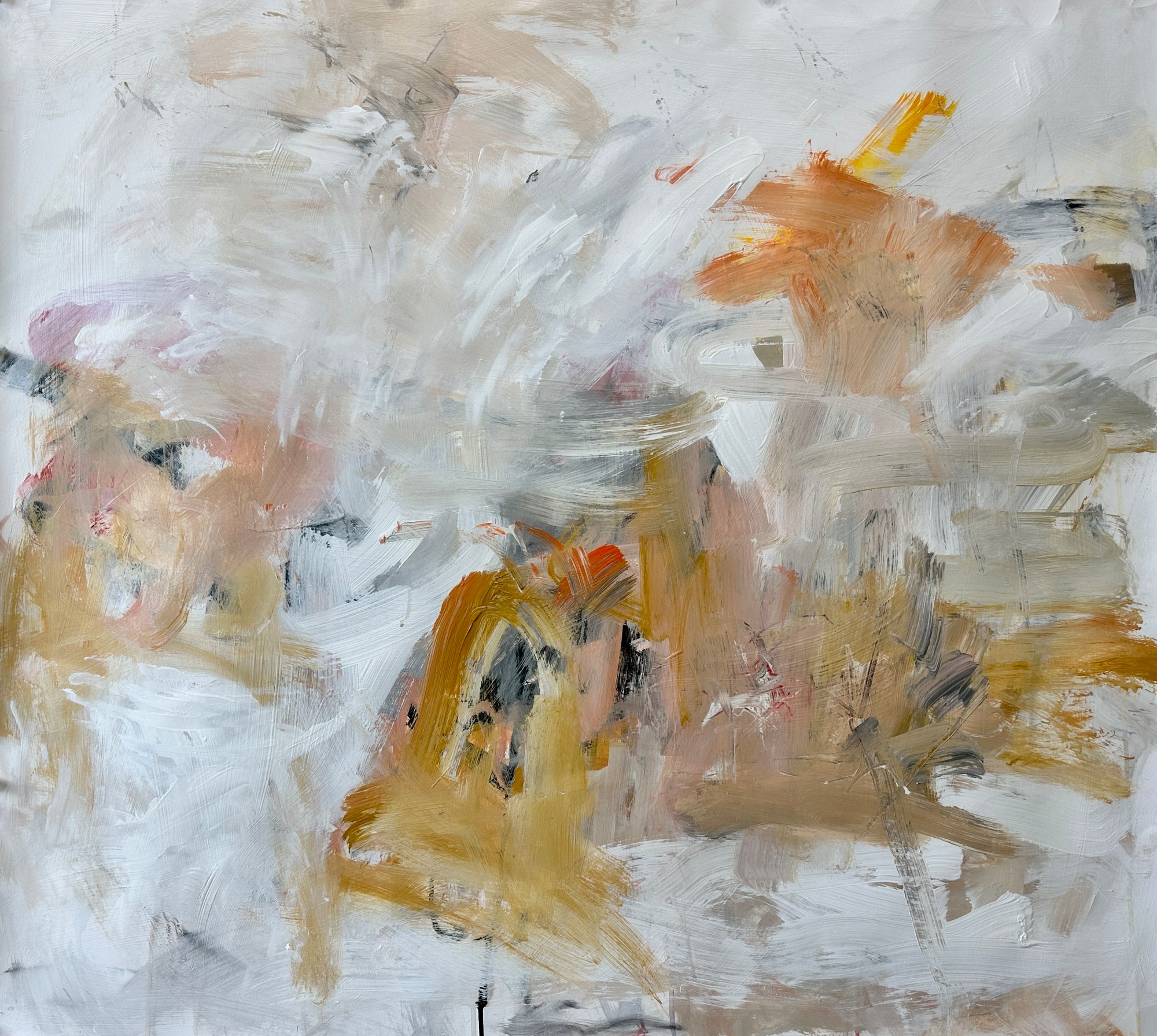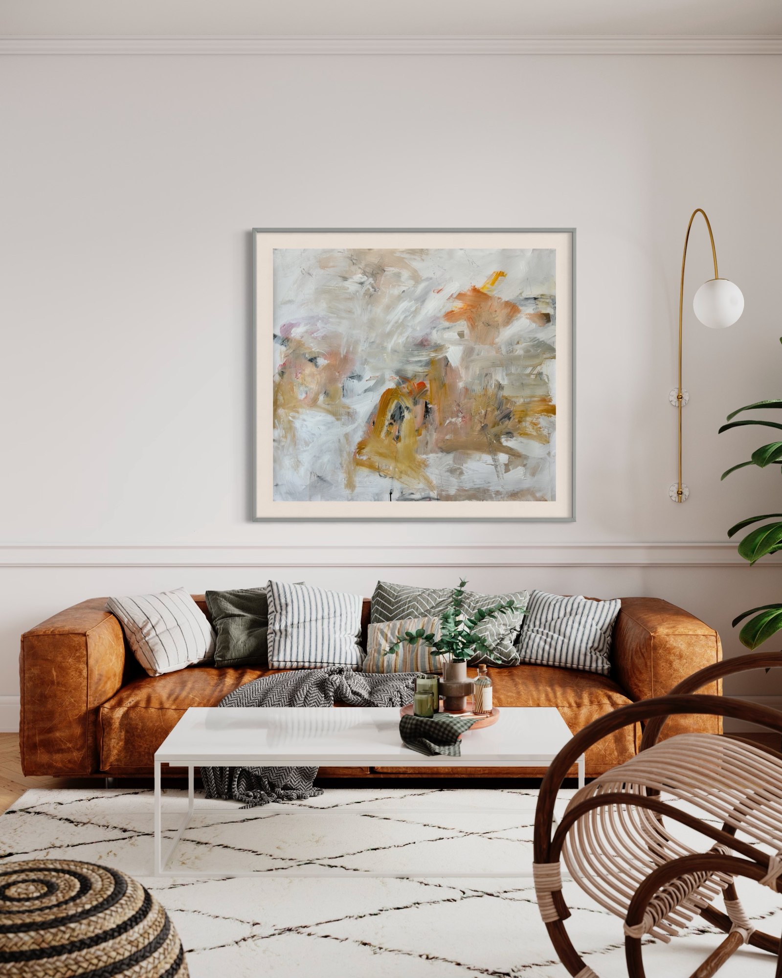 White wood frame, 2" mat, glass Framed size: 47 1/2" x 51 1/2"