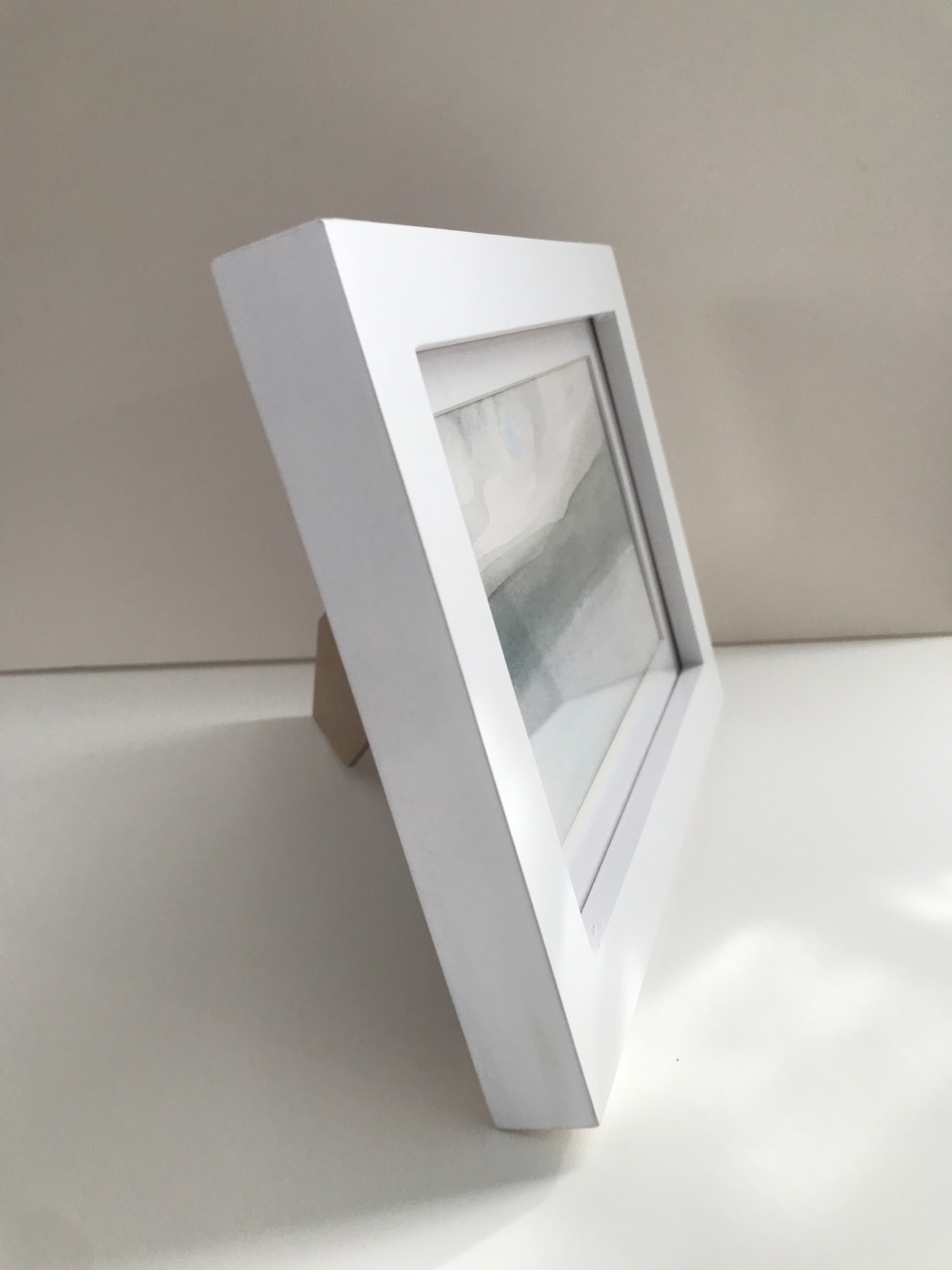 Blue Sun is a fresh, contemporary take on landscape painting that explores subtle variations of color and transparency reflected as abstract forms. This 4 x 6" acrylic study on paper is one of a series of early works playing with acrylic glazing techniques to create the sensation of atmosphere.