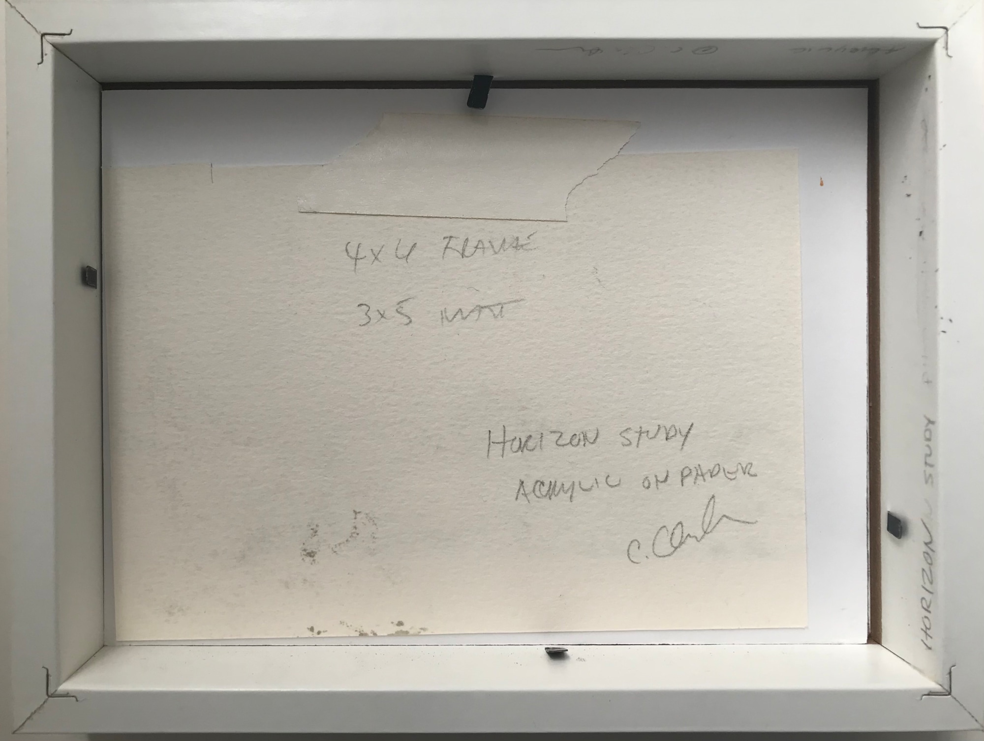 Horizon Study is a fresh, contemporary take on abstract landscape painting that explores subtle variations of color and transparency reflected as abstract forms. This 4 x 6" acrylic study on paper is one of a series of early works playing with acrylic glazing techniques to create the sensation of atmosphere.