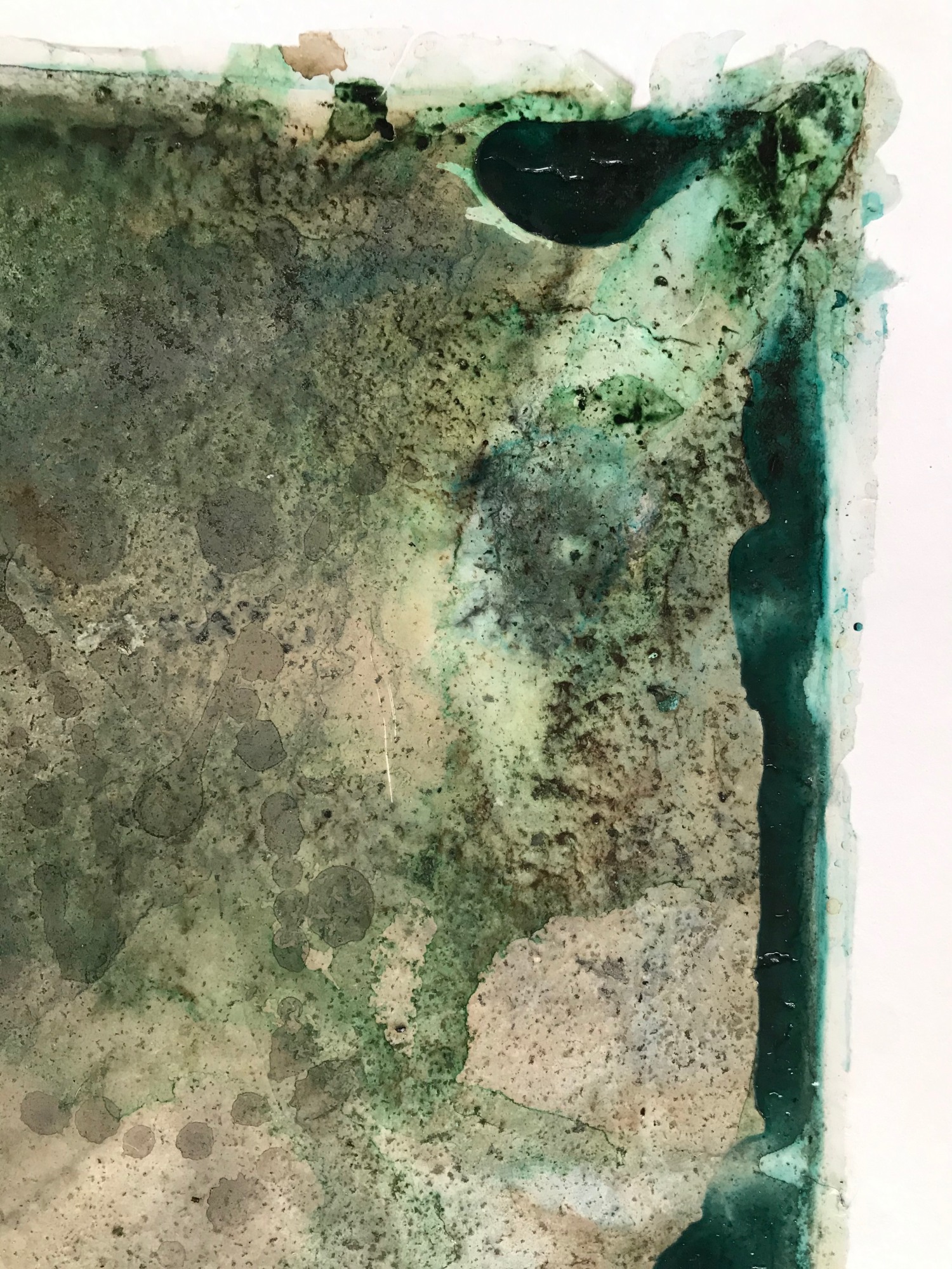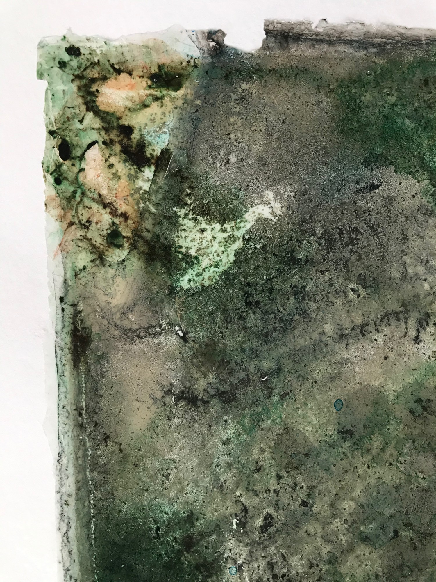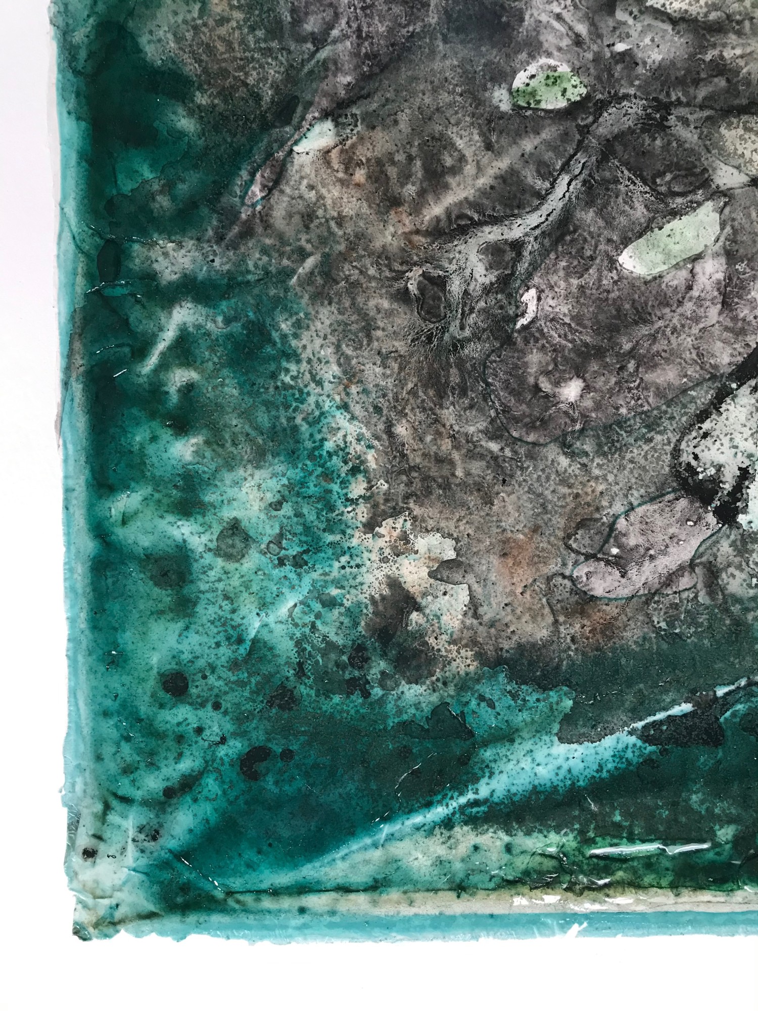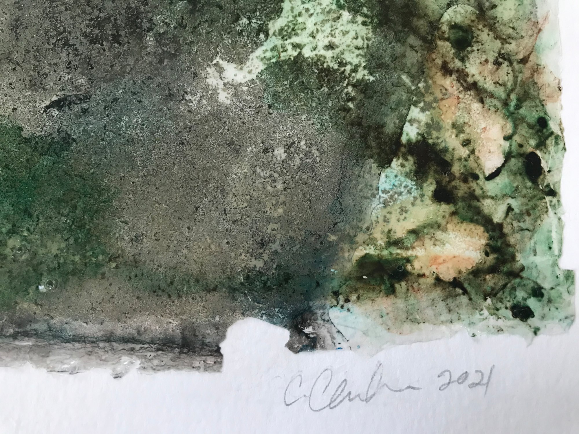 River of Dreams 12 is a 22.5x15" abstract, acrylic painting mounted on an 24x18" soft white archival water color paper. The rich textures, and deep, rich earth tones create a mysterious abstract landscape quality to the piece.