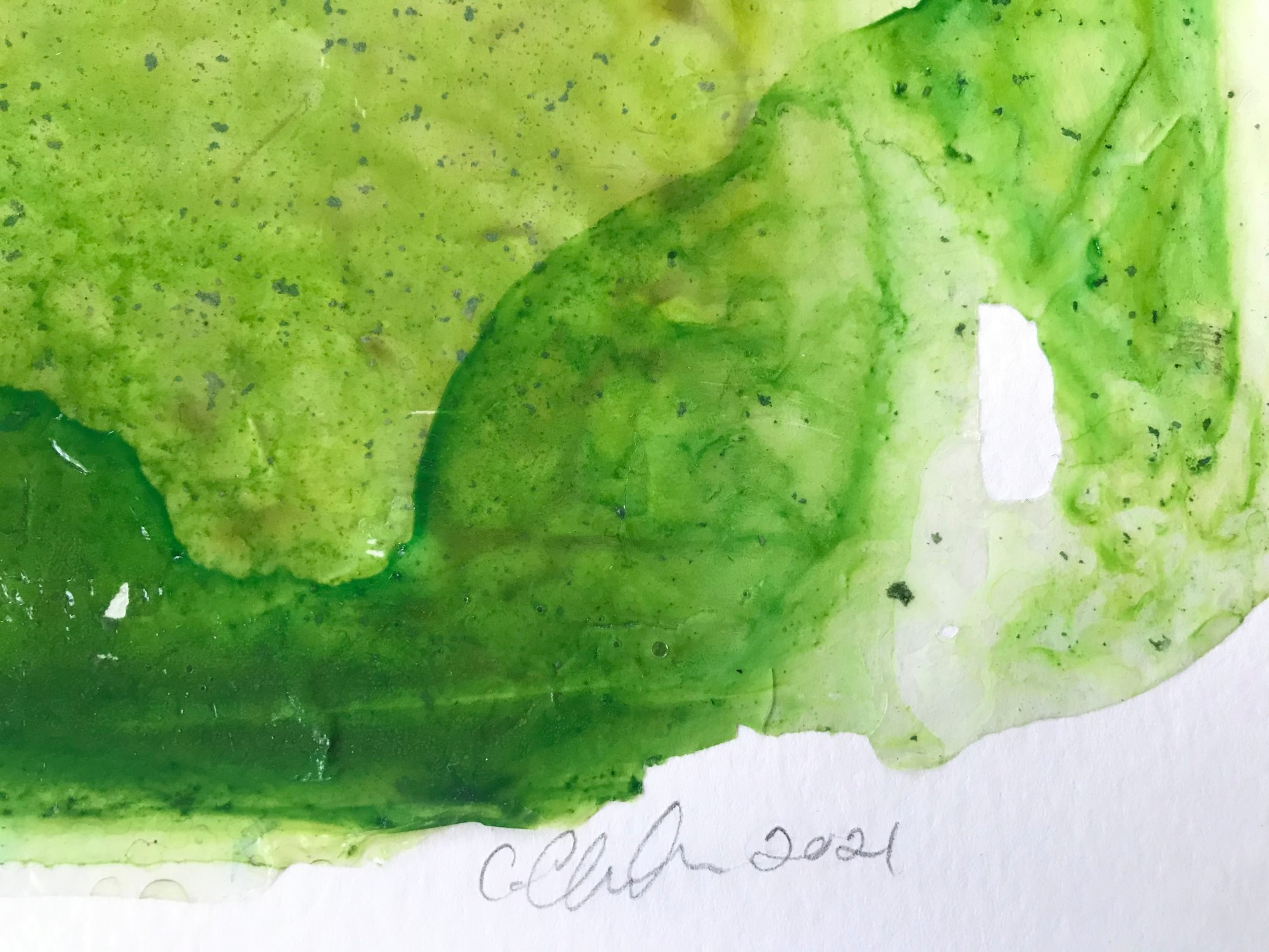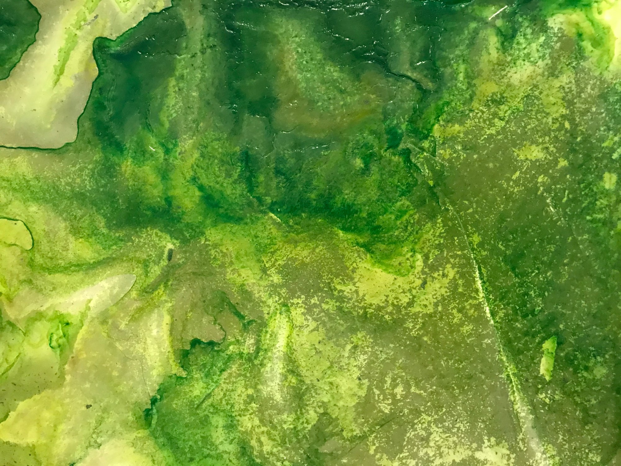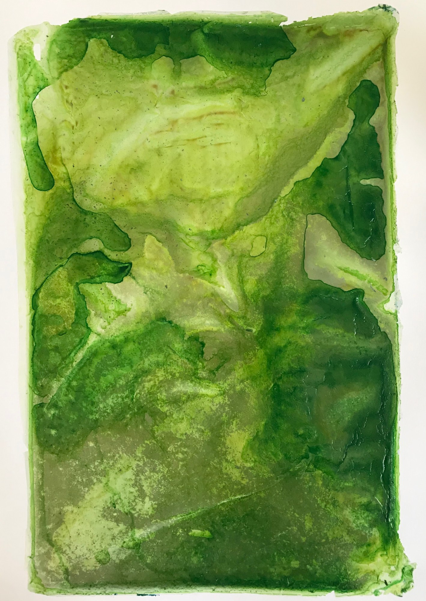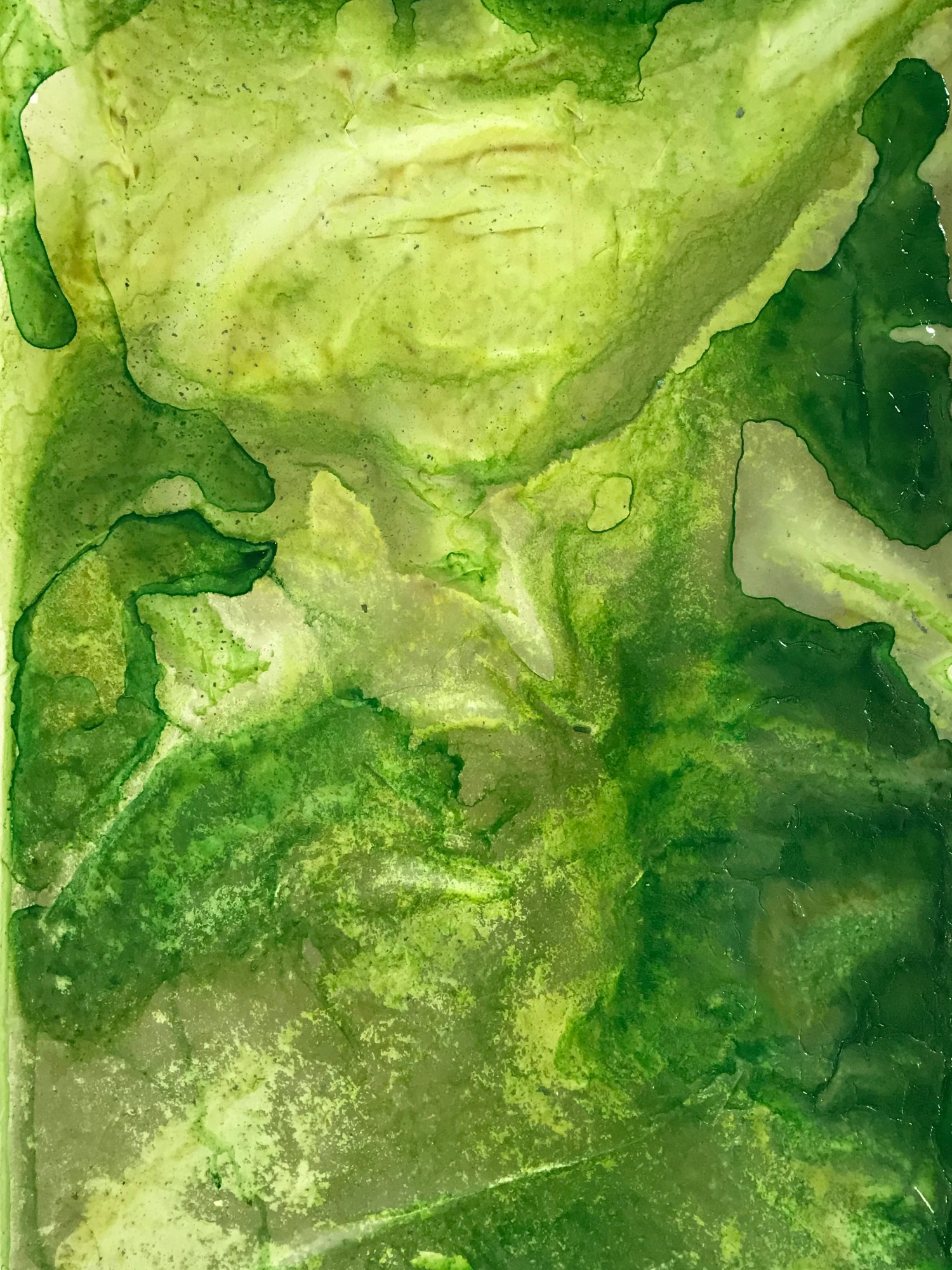 River of Dreams14 is a 22.5x15" abstract, acrylic painting mounted on an 18x24" soft white archival water color paper. The rich green palette creates an energetic atmosphere reminiscent of spring growth.