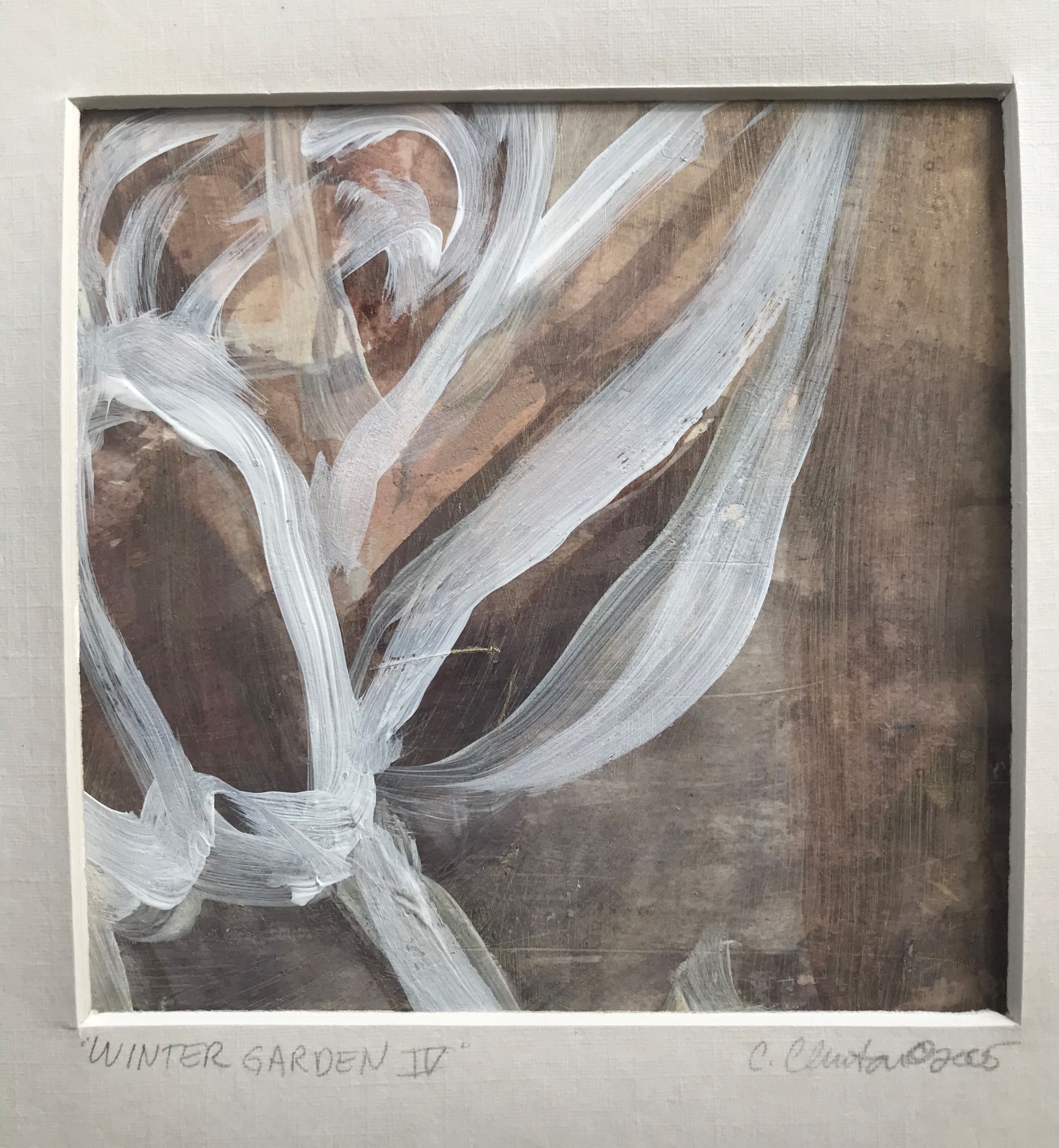 Winter Garden 4 is a fresh, contemporary take on landscape painting that explores subtle variations of shape, color and transparency reflected as abstract forms. WinterGarden 4 is part of a series of winter garden studies focusing beauty and the passage of time.