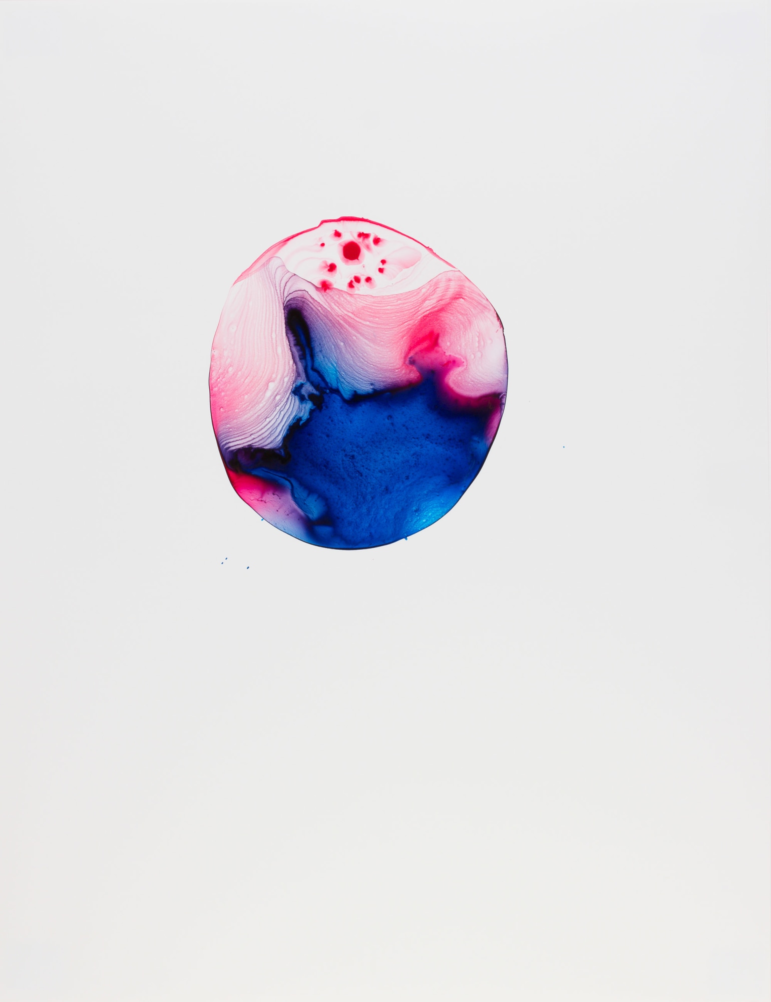 Water and Blood: Two endlessly deep symbols that call an undeniable connection to the spirit world. In the series The Cloud of Unknowing I use the specific color symbology of red and blue to create images in Jungian archetypical shapes to draw connections between the visible and invisible world. The series is concerned with the metaphor of the cloud, the synechdoche of blood and the swirling invocation of the spirit world through the juxtaposition of blood as a symbol for living humanity and water as a more complex symbol of invisible supernatural spiritual forces. My interest lays here: What is completely invisible, definitely real, and which the existence is only known by experience?
