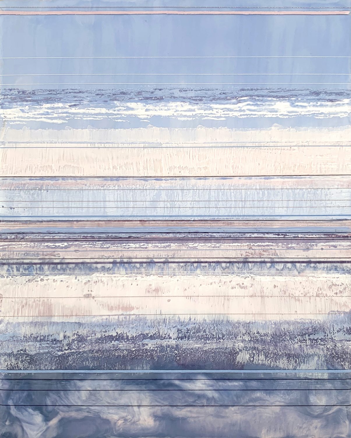 Encaustic with thread and pastel