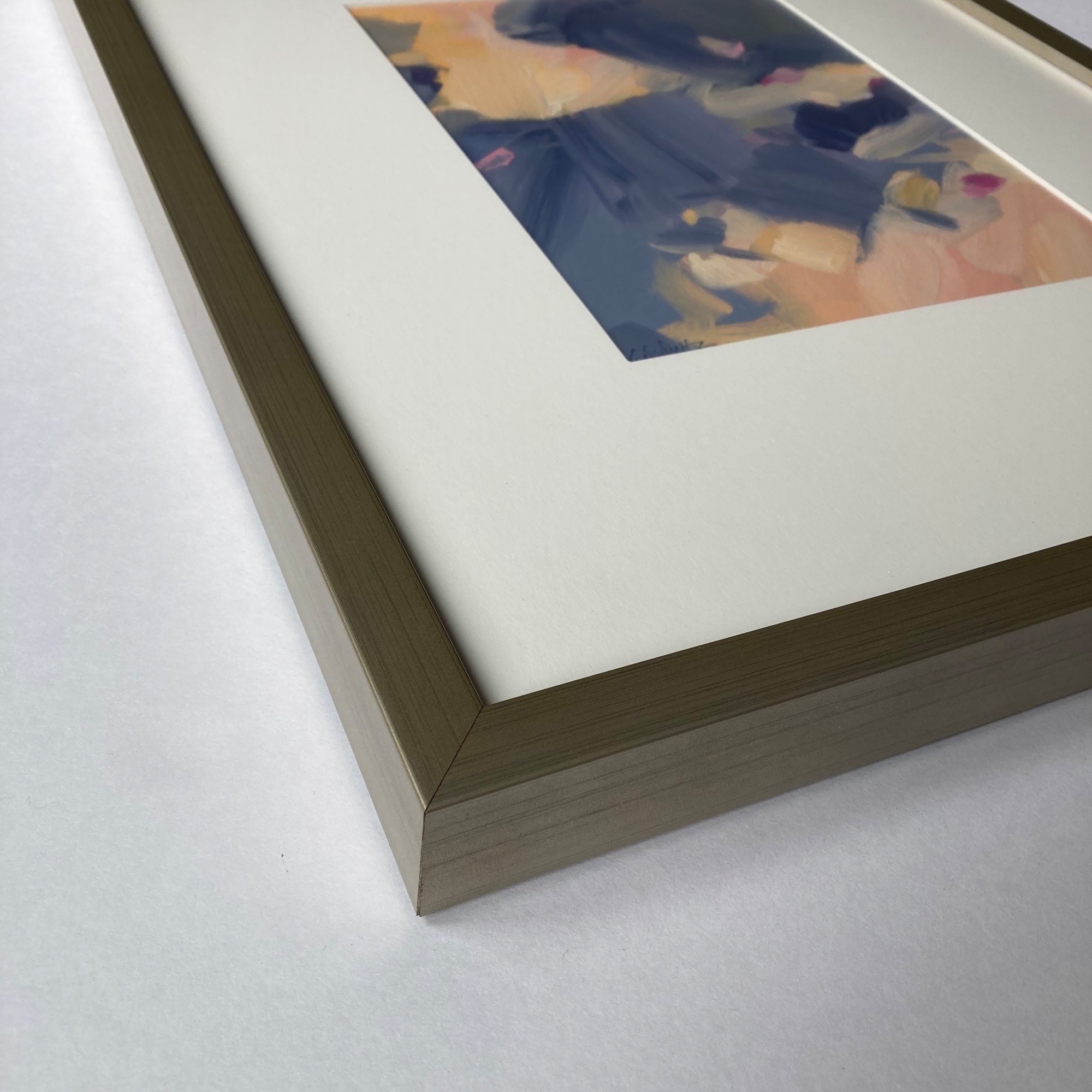 Oil on arches huile paper in white cotton rag mat, 20x16 (exterior matted dimensions) framed in warm pewter wood frame. ($665 price includes shipping in the US.)