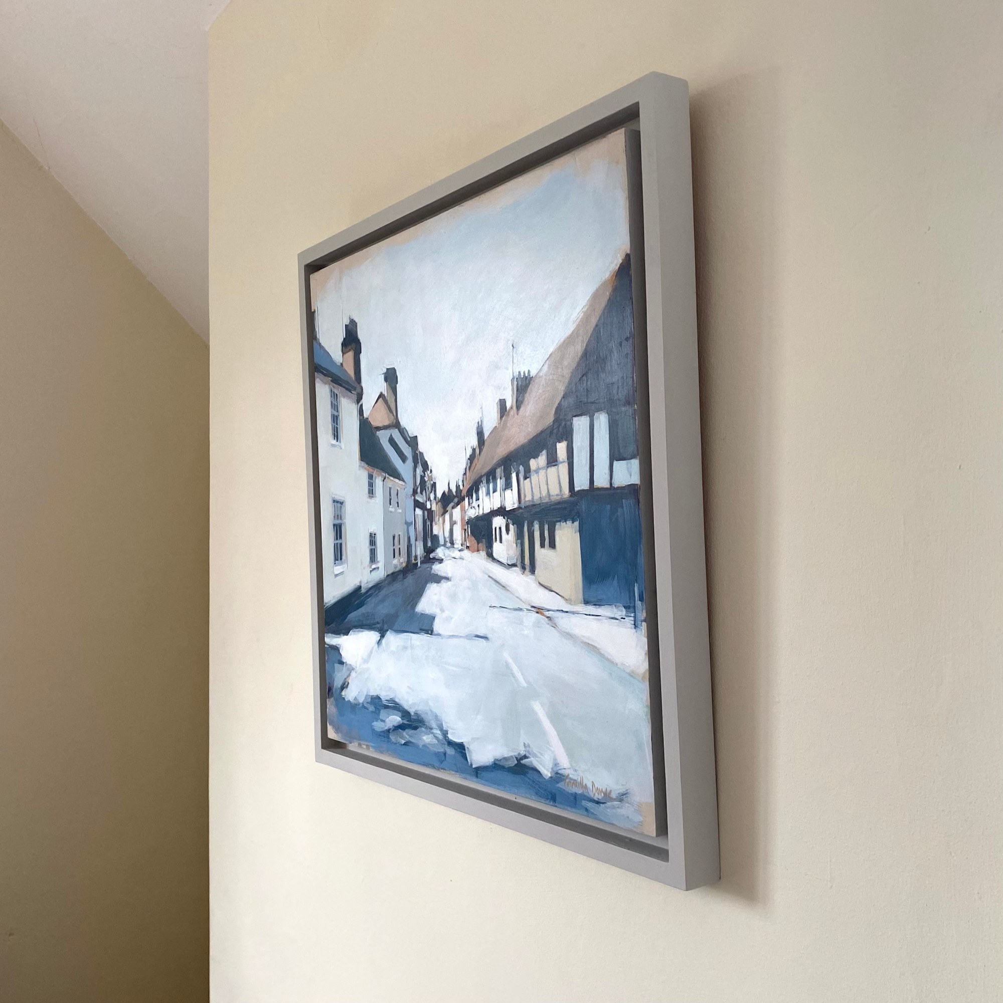 Acrylic on hand mixed and applied gesso on cradled wood art board. Framed in simple 'tray' frame, hand painted Farrow & Ball dead flat range.