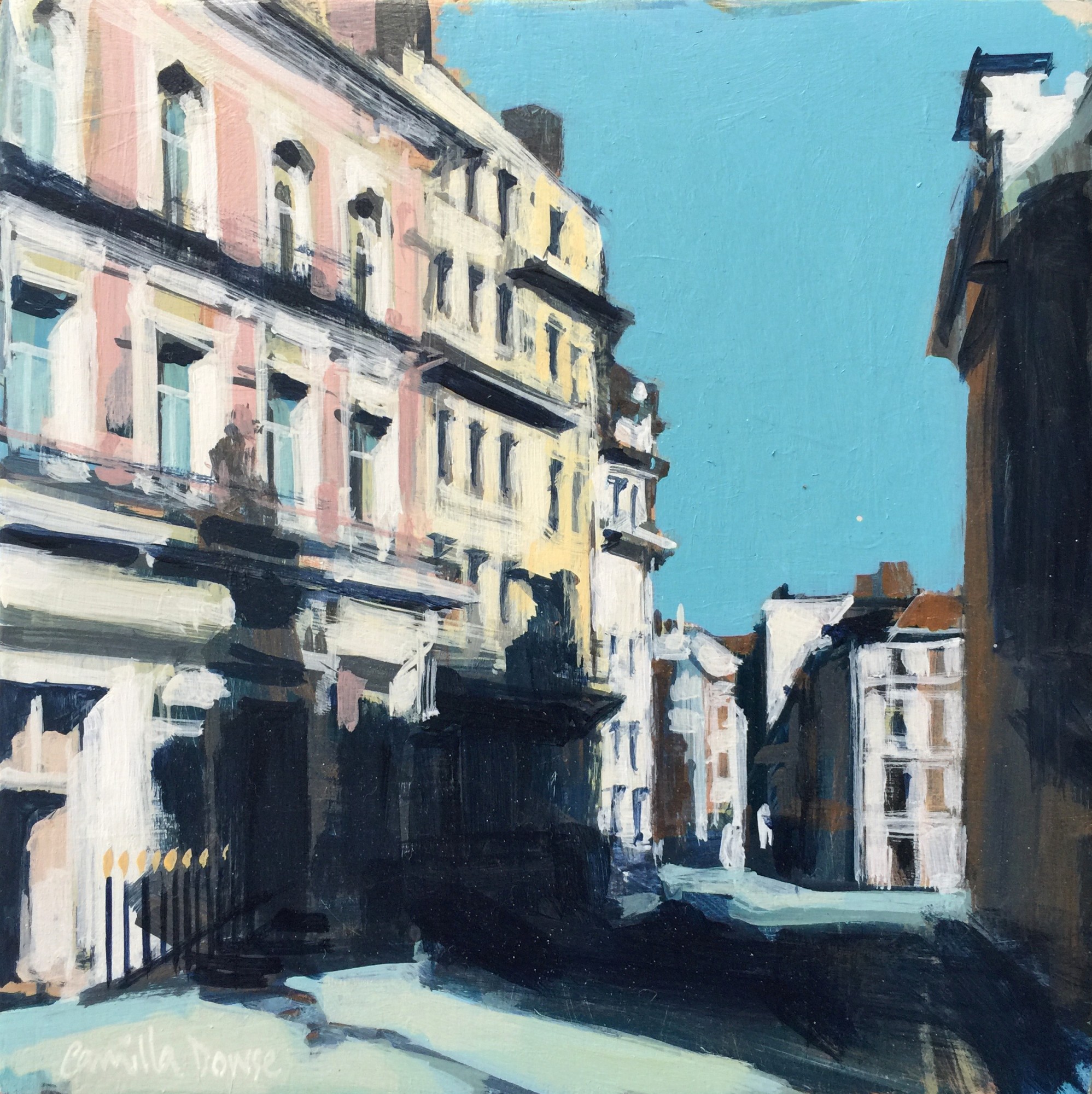 Acrylic on hand mixed and applied gesso, on wood art board. Framed in bespoke wood 'tray' frame, hand painted black (Farrow & Ball Dead Flat range 'Pitch Black'). No glass.