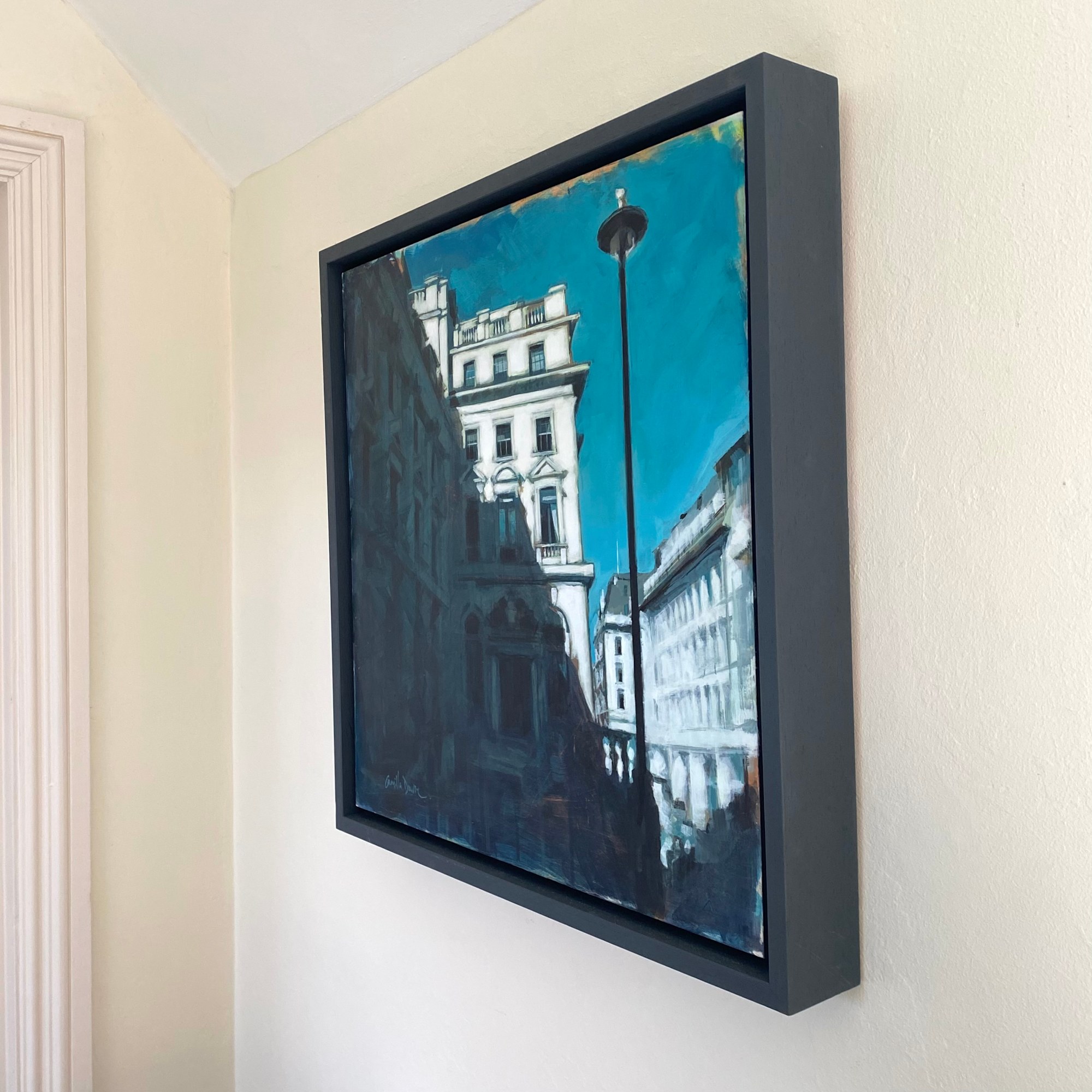 Original acrylic painting on traditional mixed and applied gesso, on deep cradled wood art board. Framed in 'tray' frame painted using F&B All Flat range 'Hopper Head Grey', no glass.