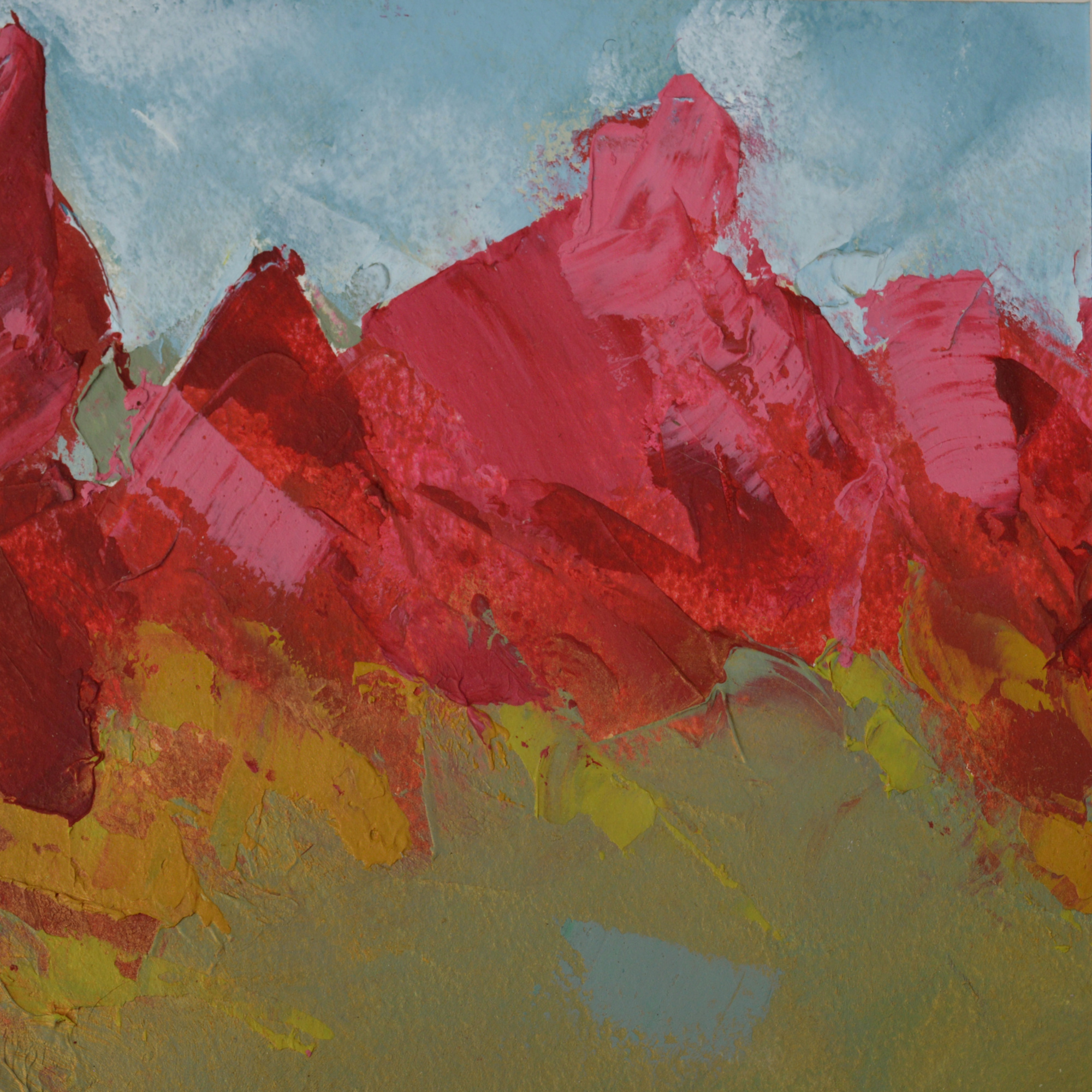 The title "Something Lost" lends an emotional dimension to this abstracted landscape. The bold red has an almost raw, wounded quality that aids in the context of loss. The way the reds dramatically revolt against the calm blue creates a striking contrast - turbulent emotions beneath a peaceful surface. The softer, muted greens and yellows in the foreground seem to fade or dissolve, which reflect memory or things slipping away. Many built-up textural layers and obscured areas reinforce something being both present and yet absent.