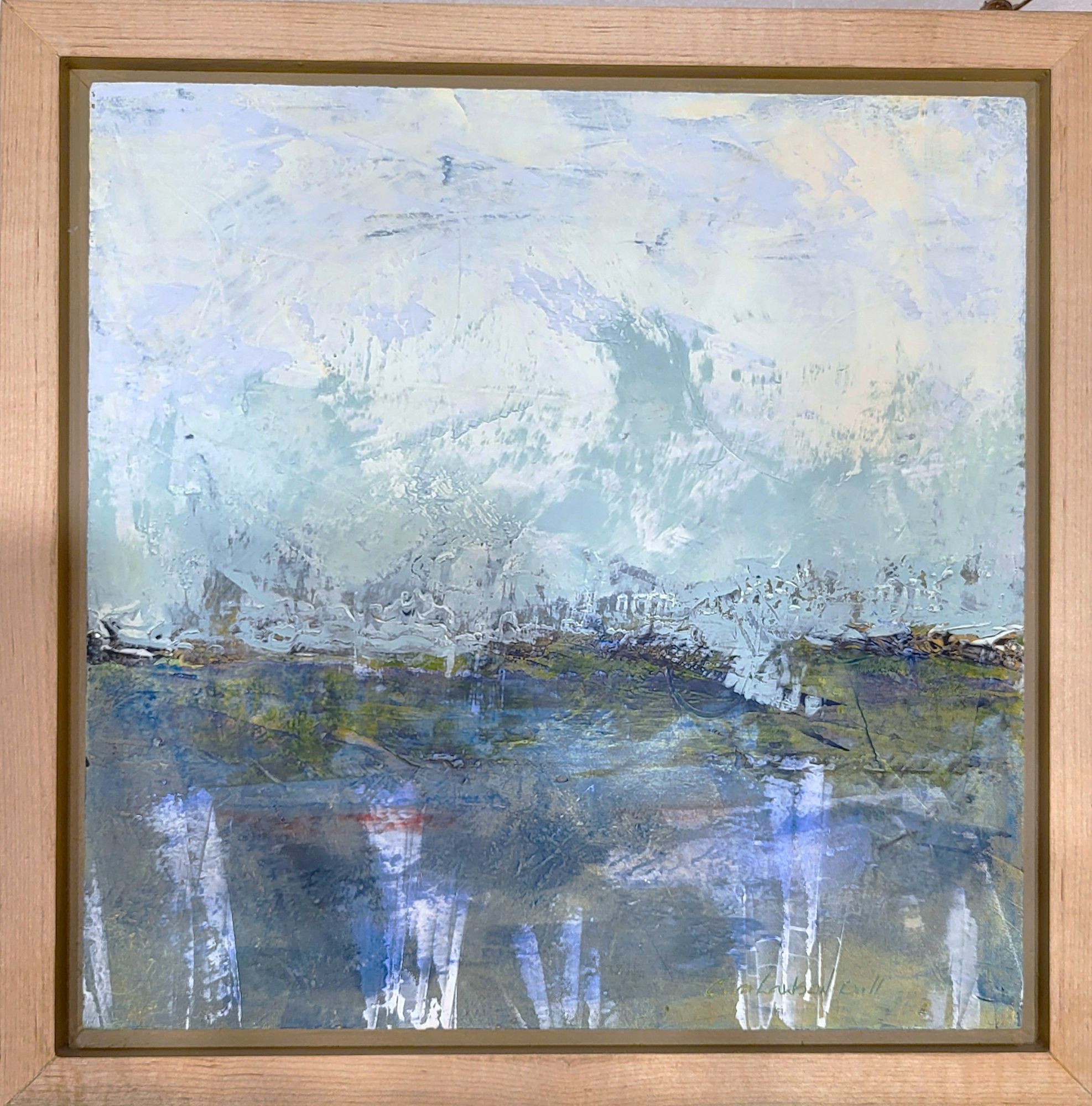 Made with oil and cold wax, this piece uses palette knives, cards, and fingers to build layers and texture. The bold, sweeping strokes create a calm yet lively scene where land, water, and sky come together. It invites us into a quiet reflection of our natural world.