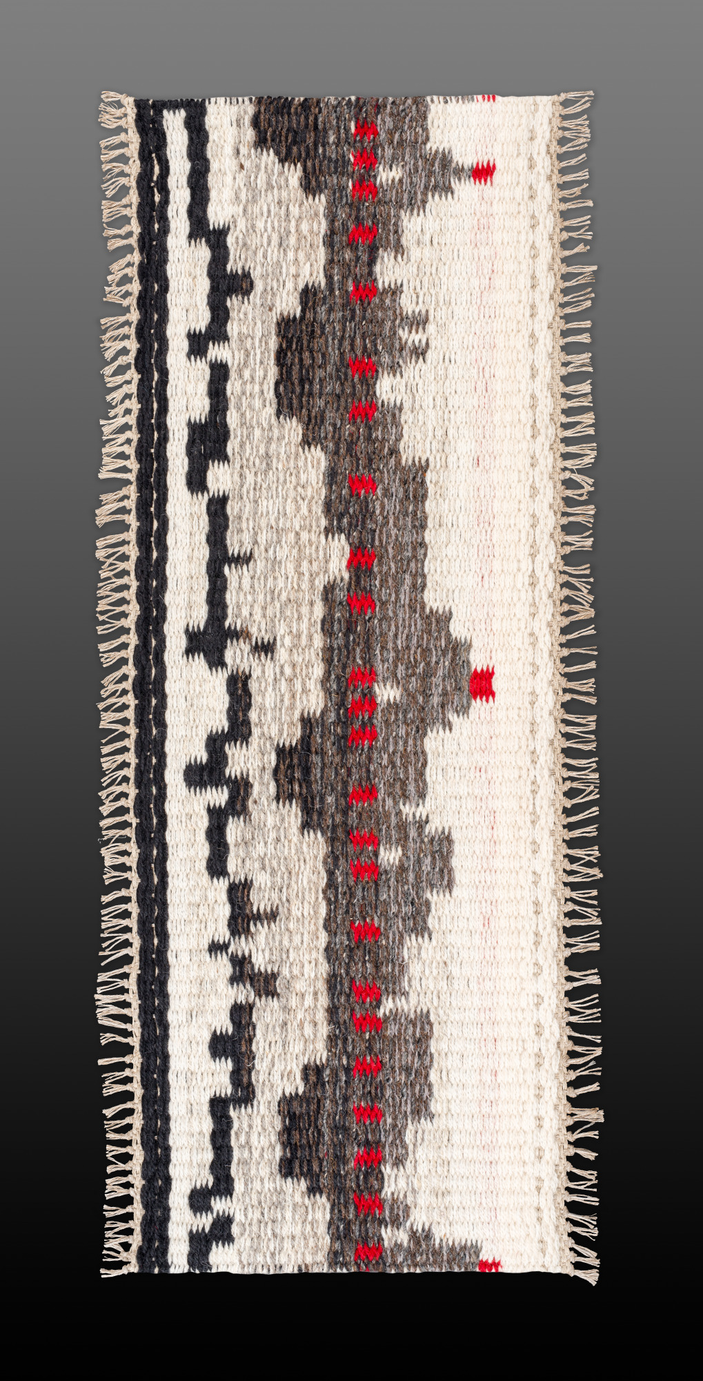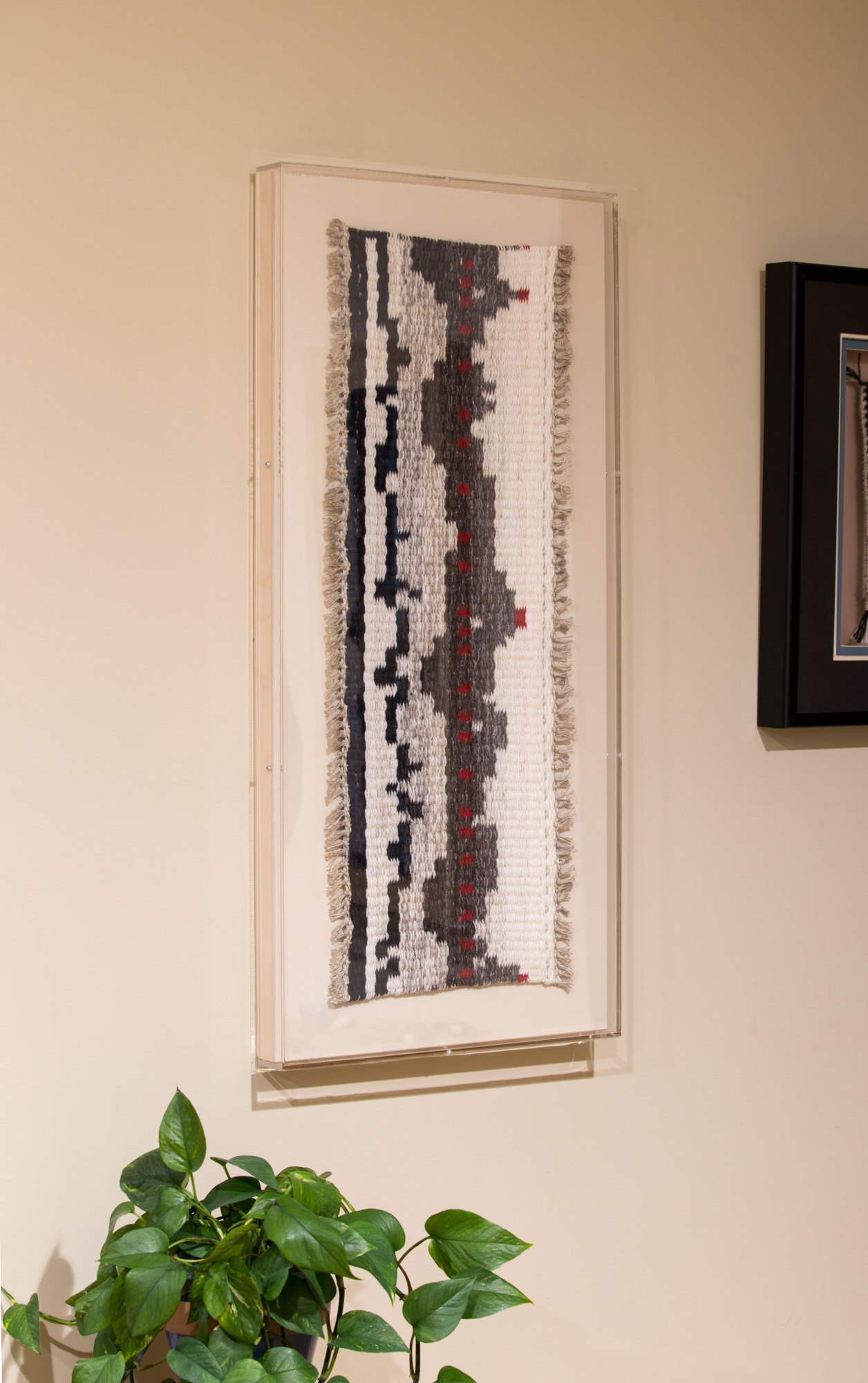 Contemporary and Abstract Design using Southwestern Palette. "Fragment 3" by Carol Irving, is a reflection of her broader artistic philosophy as a fiber artist specializing in weaving large rugs and wall hangings. Irving's work is driven by a deep love for the materials she uses, especially yarn, and the process of weaving itself, which she finds both meditative and grounding.