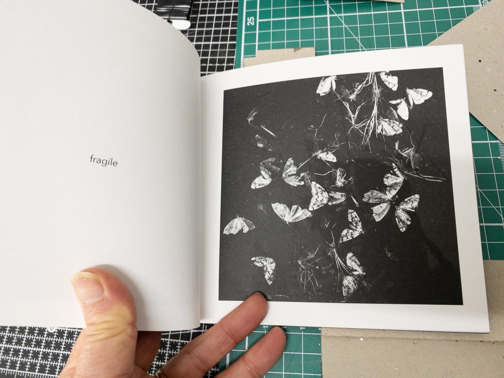15 x 17.5cm. Cover wild green 300g. Pages Munken Lynx rough 170g. Printed on HP Indigo press. 36 pages.