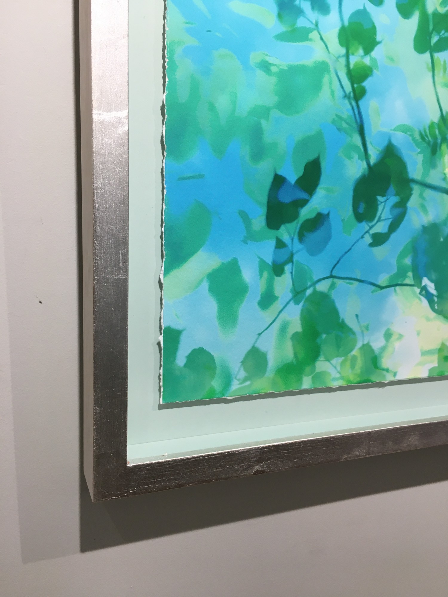 Fine Art Print image size 70 cm x 70 cm on Museum Etching paper 305 gm. Obeche frame with float mount. Painted and waxed surround and white washed frame. The facing surface of the frame is coated with silver gilt.