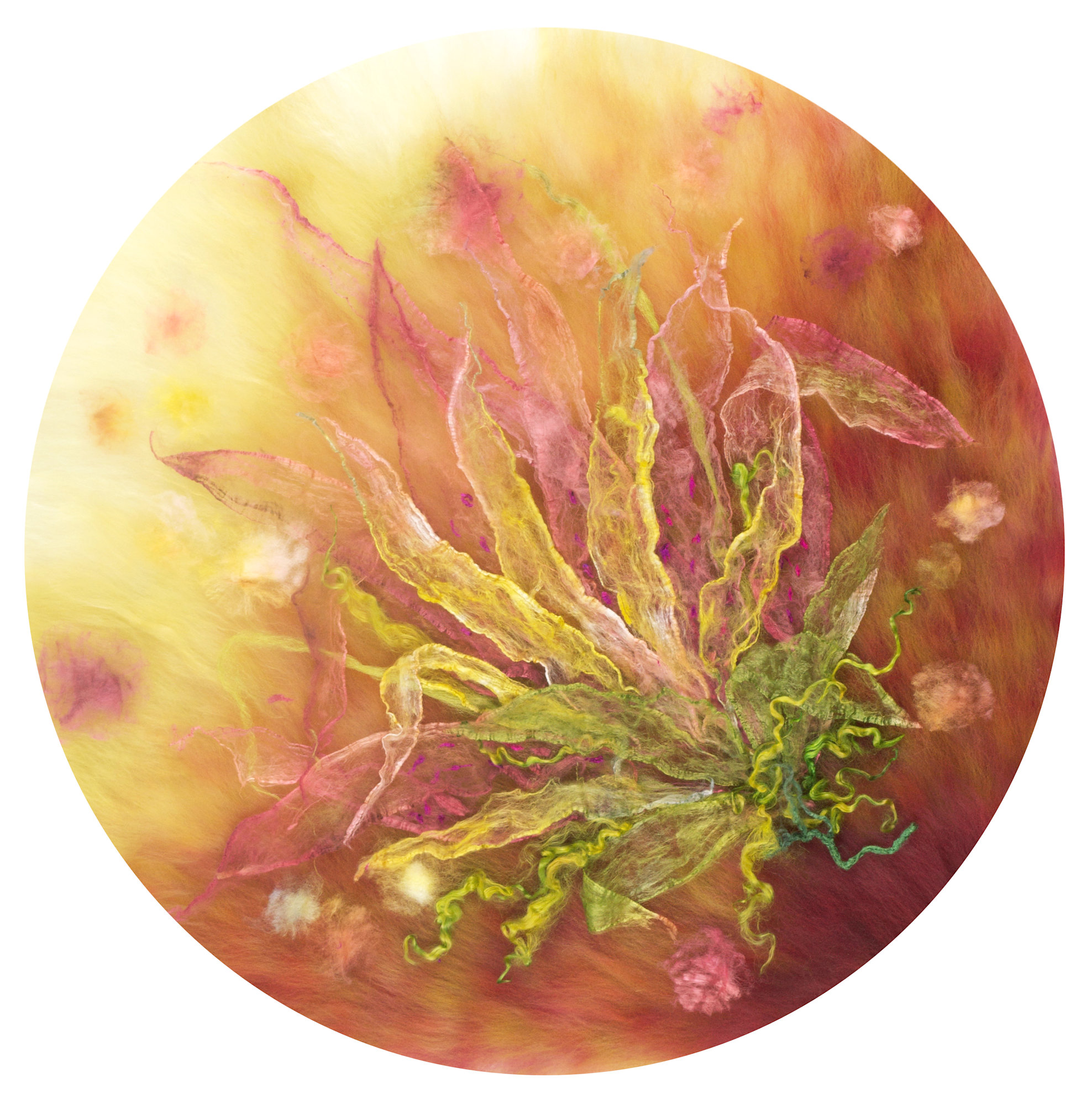 "Loosely Lily" is an eye catching artwork with great depth of colour and dimension. The capture of this type of fibre art is unique to Caroline Burton Fibre Artist and this piece is sure to draw comment wherever it is placed.