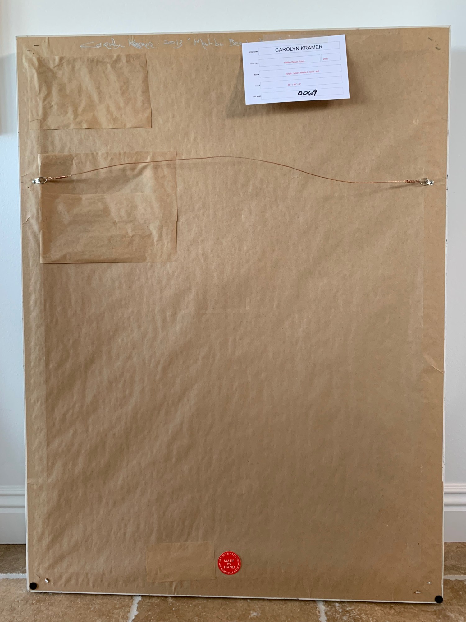 West Coast beaches inform my art, where surf foam rolls onto the beach. Nuanced paint layers move from surface sand to surf & to gold leaf waves. Beach foam is enlarged to capture textures & a sense of visual silence that is both elegant and calm.