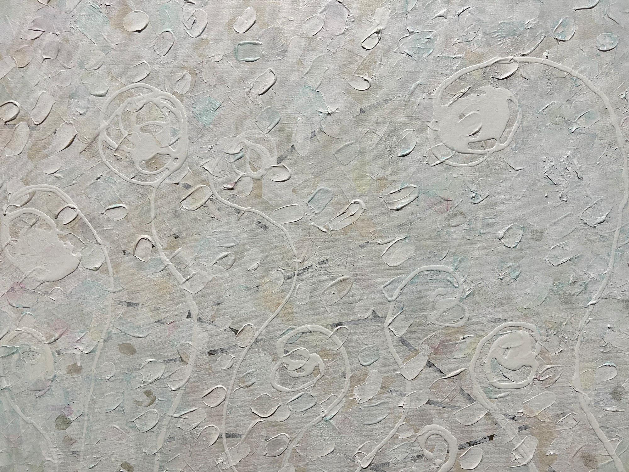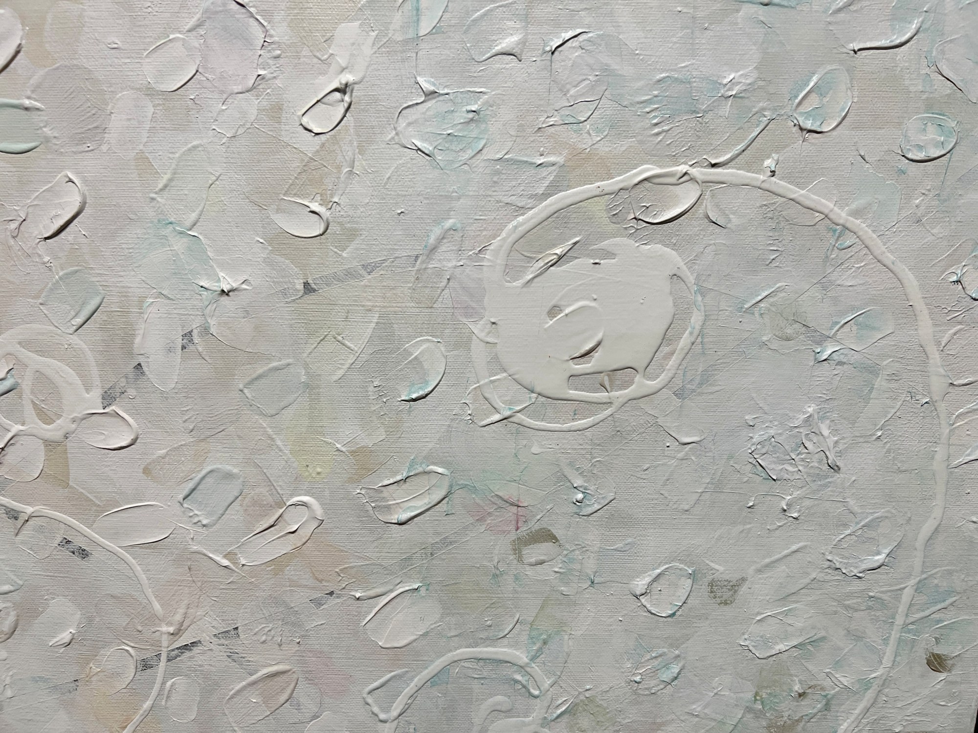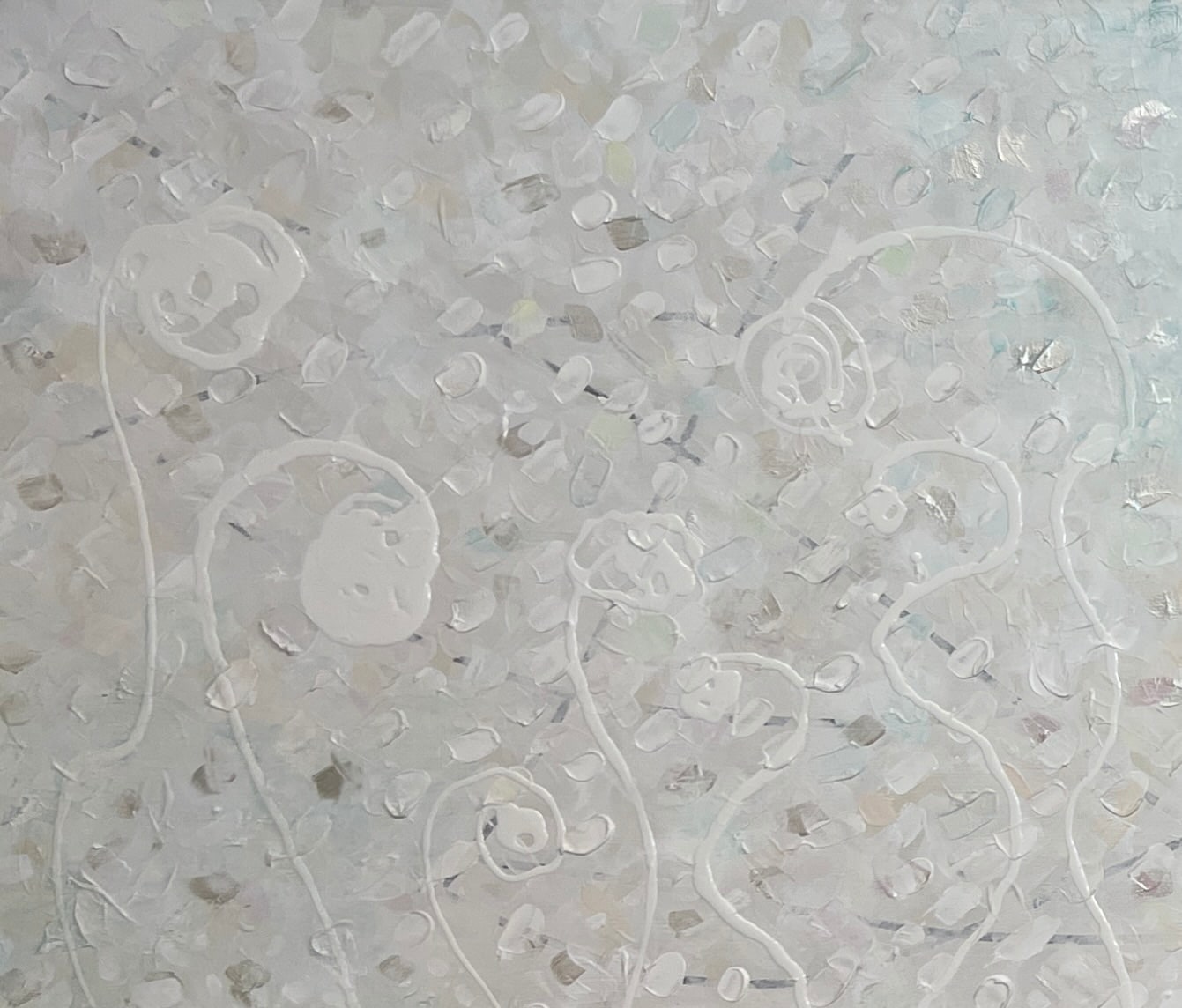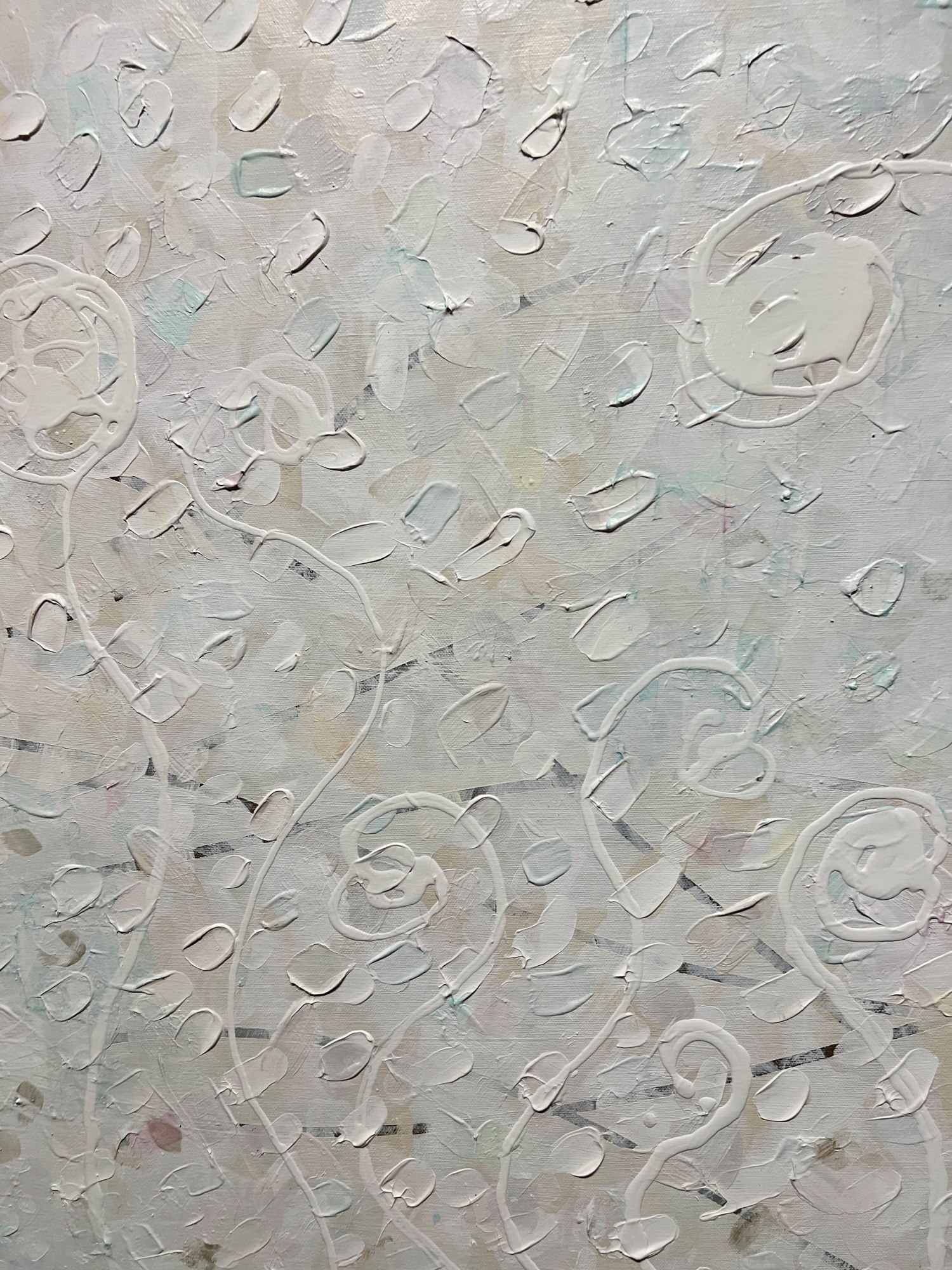 Acrylic layers shift from subtle earth tones to luminous whites, revealing hidden hues upon closer reflection. The monochromatic white surface becomes a visual meditation—calming, radiant, and quietly alive with color.