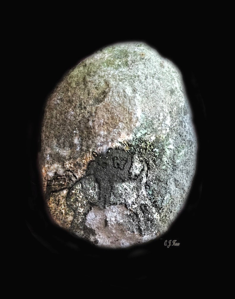 This horse puts in mind a unicorn without a horn. It has a magical appearance to it. It’s keeping company with two little bears.