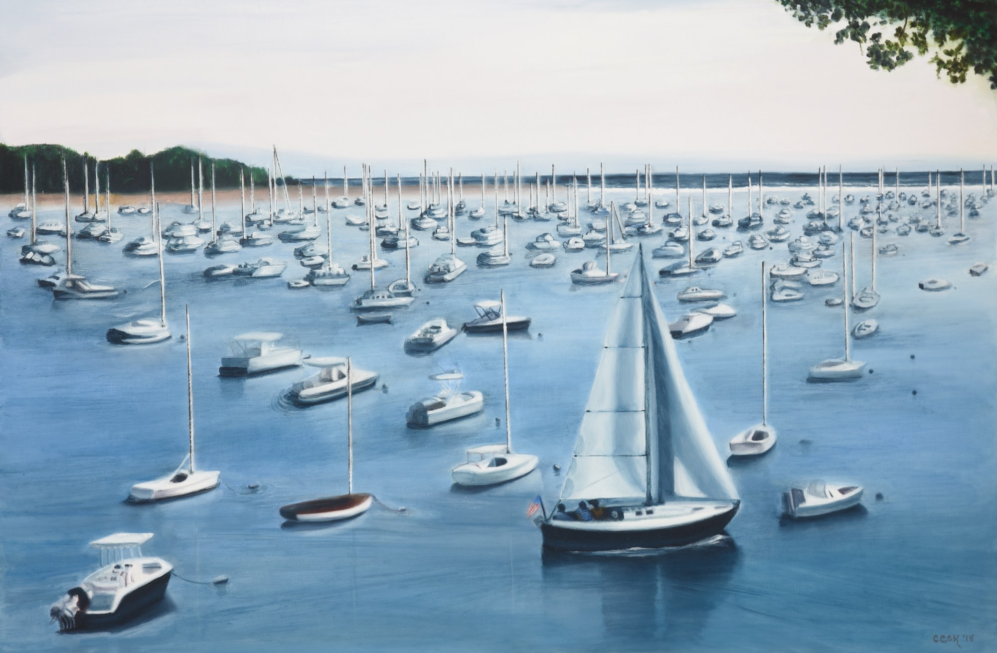 We stayed in a very small room in a BnB in Marblehead, MA. Luckily the weather was beautiful, perfect for walking. We found a great walk from our BnB up a large hill overlooking a huge waterway and marina. I thought all the many boats and ships were awesome, bobbing in the water. One large sailboat made its way slowly thru the mass of boats. We sat on a bench and watched the boats for several hours, breathing in the sea air. A time of serenity.