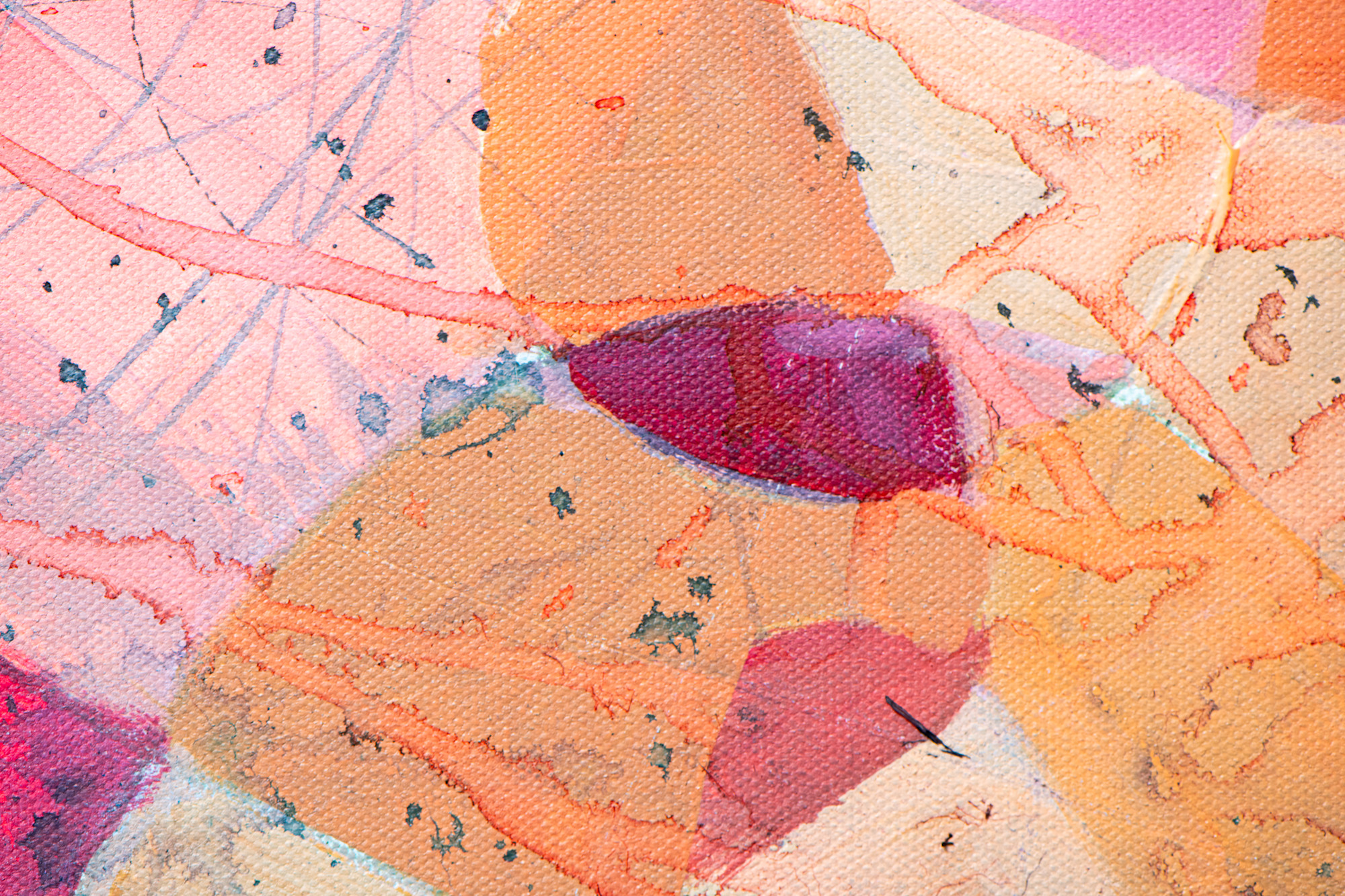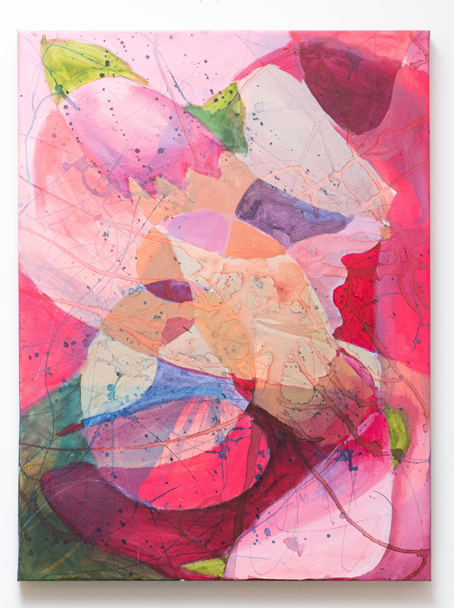 Silhouette by Carolyn Wonders emerges as a dynamic abstract piece, where various shades of pink take center stage, accented by touches of green that add depth and contrast. Created with acrylic paint and ink, the artwork pulses with energy, showcasing drips and splashes that create a sense of fluid movement across the canvas. The interplay between the soft pinks and bold drips evokes a feeling of spontaneity and freedom, as the ink dances unpredictably, forming an expressive, ever-shifting silhouette. This piece captures the essence of motion, inviting viewers to experience the constant flow of emotion and change.