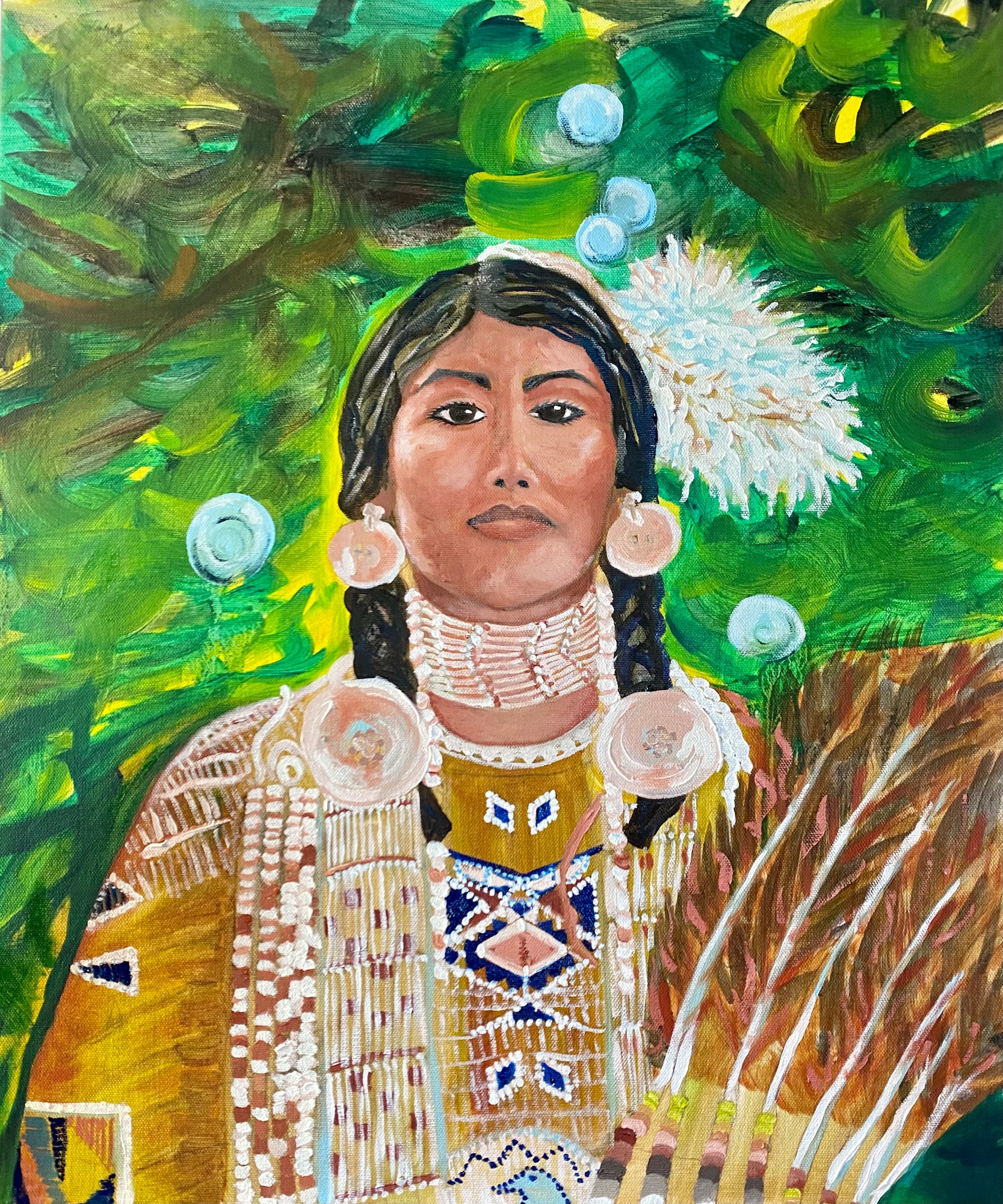 The Healing Dance portrays Ancestral orbes supporting the dancer. She dances for those unable and unpermitted. She dances for those no longer with us. She has pride in her culture and her heritage.