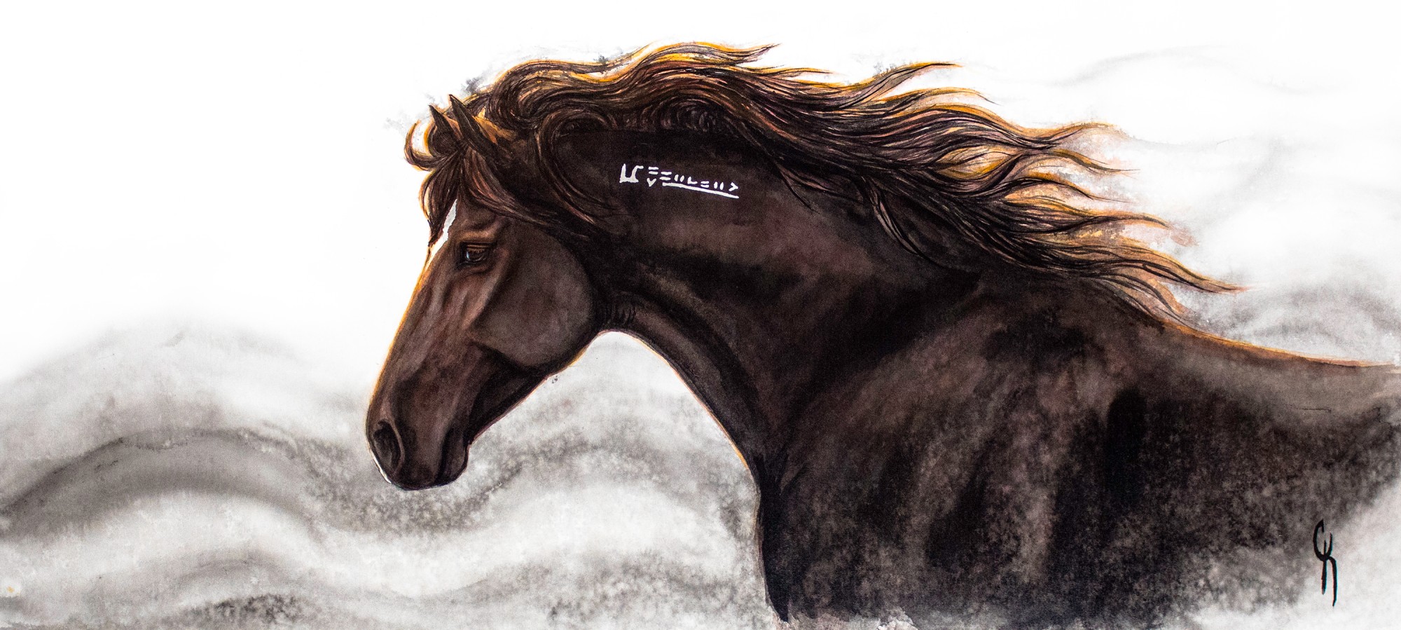 Acrylic and Chinese ink on watercolor paper, mounted on gessoed hardboard and varnished with an archival permanent varnish
