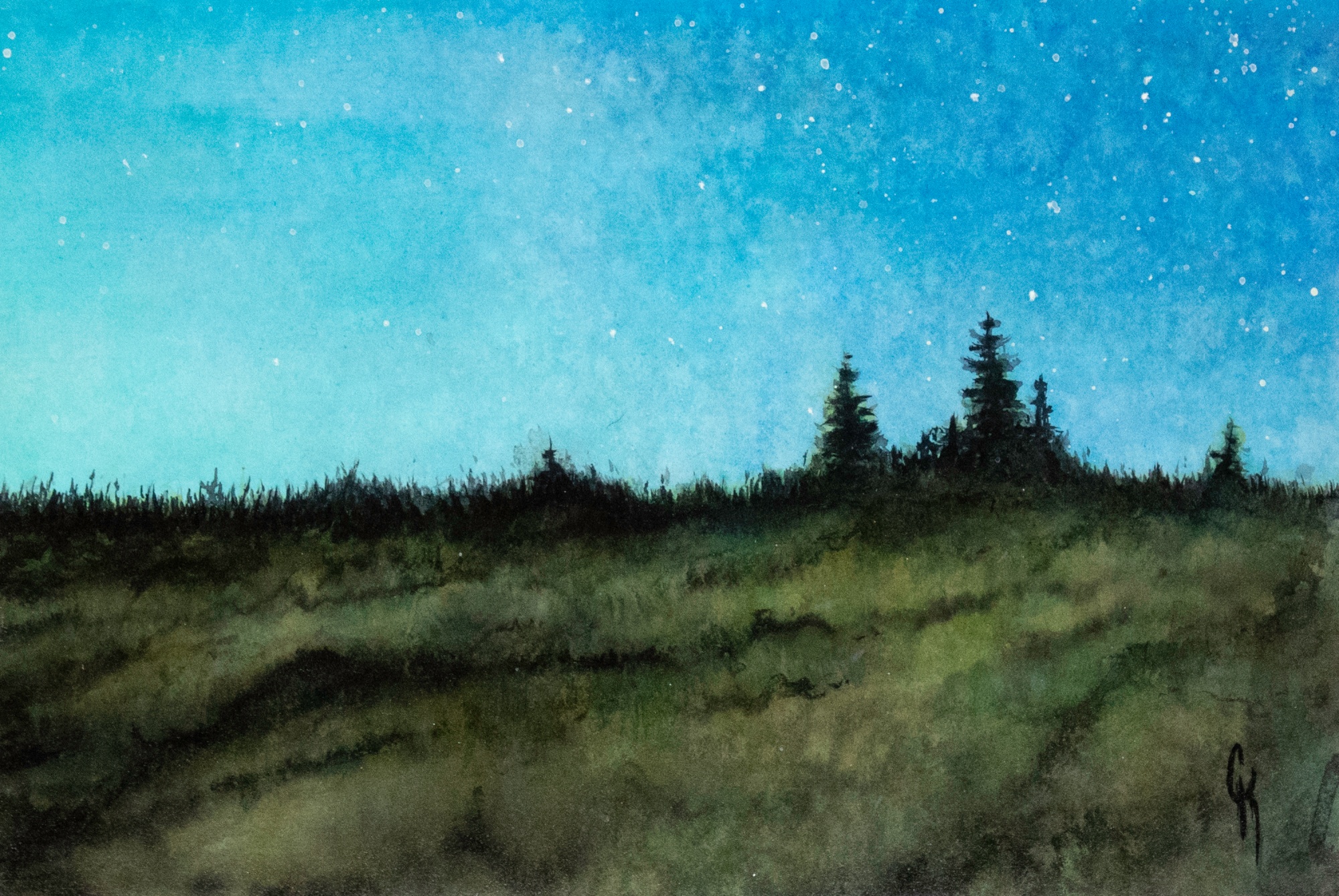 Acrylic and Chinese ink on watercolor paper, mounted on gessoed hardboard and varnished with an archival permanent varnish