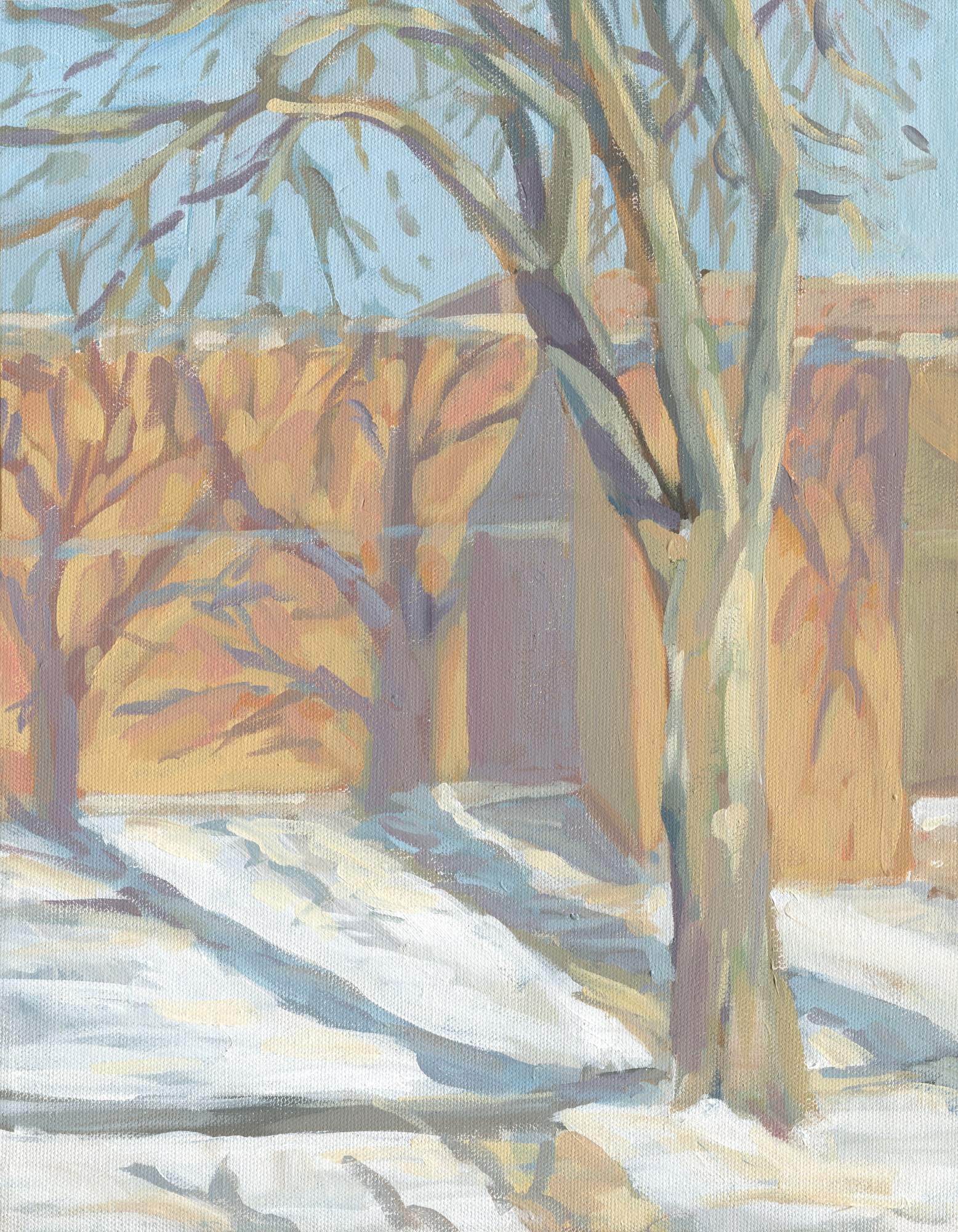 An original painting of a large tree outside the school across the street from us. This piece was painted from my guest room window on one of our below-freezing afternoons this winter. Painted in acrylic on stretched canvas