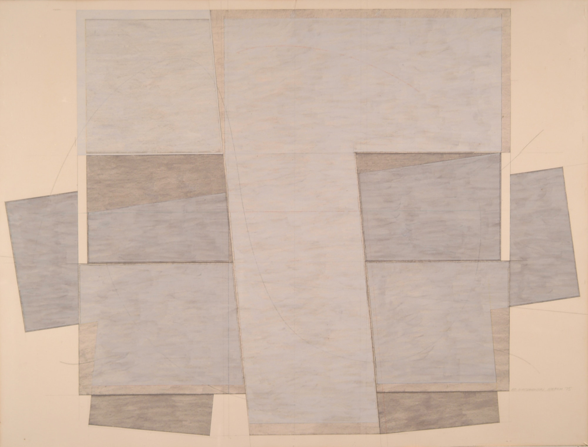 Untitled, geometric abstract painting of grays and whites by Ed Mieczkowski