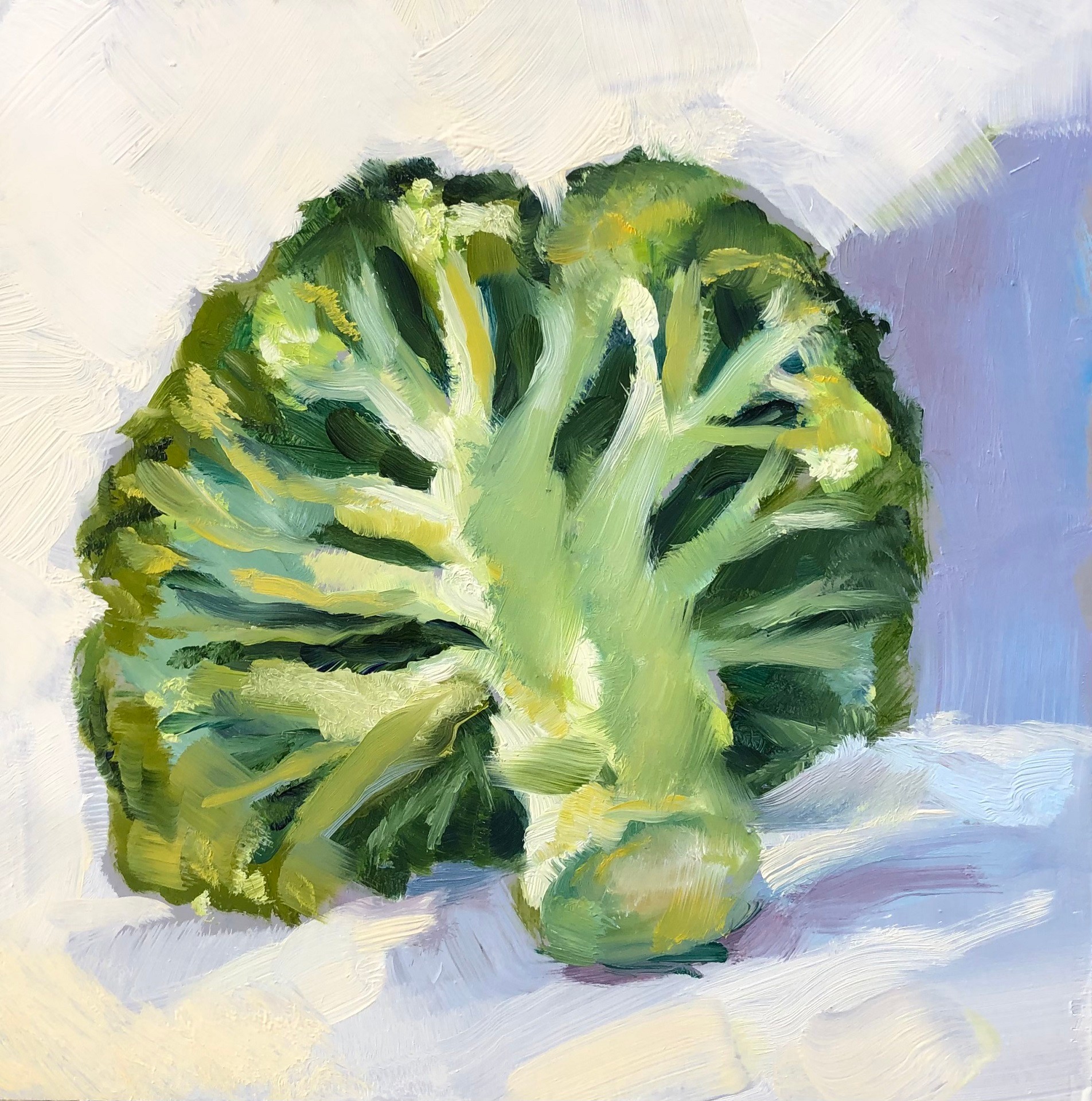 I like to work with cool and warm colors. Green is a cool color but can feel very warm in certain light. And in reality brocolli can be eaten warm or cool.
