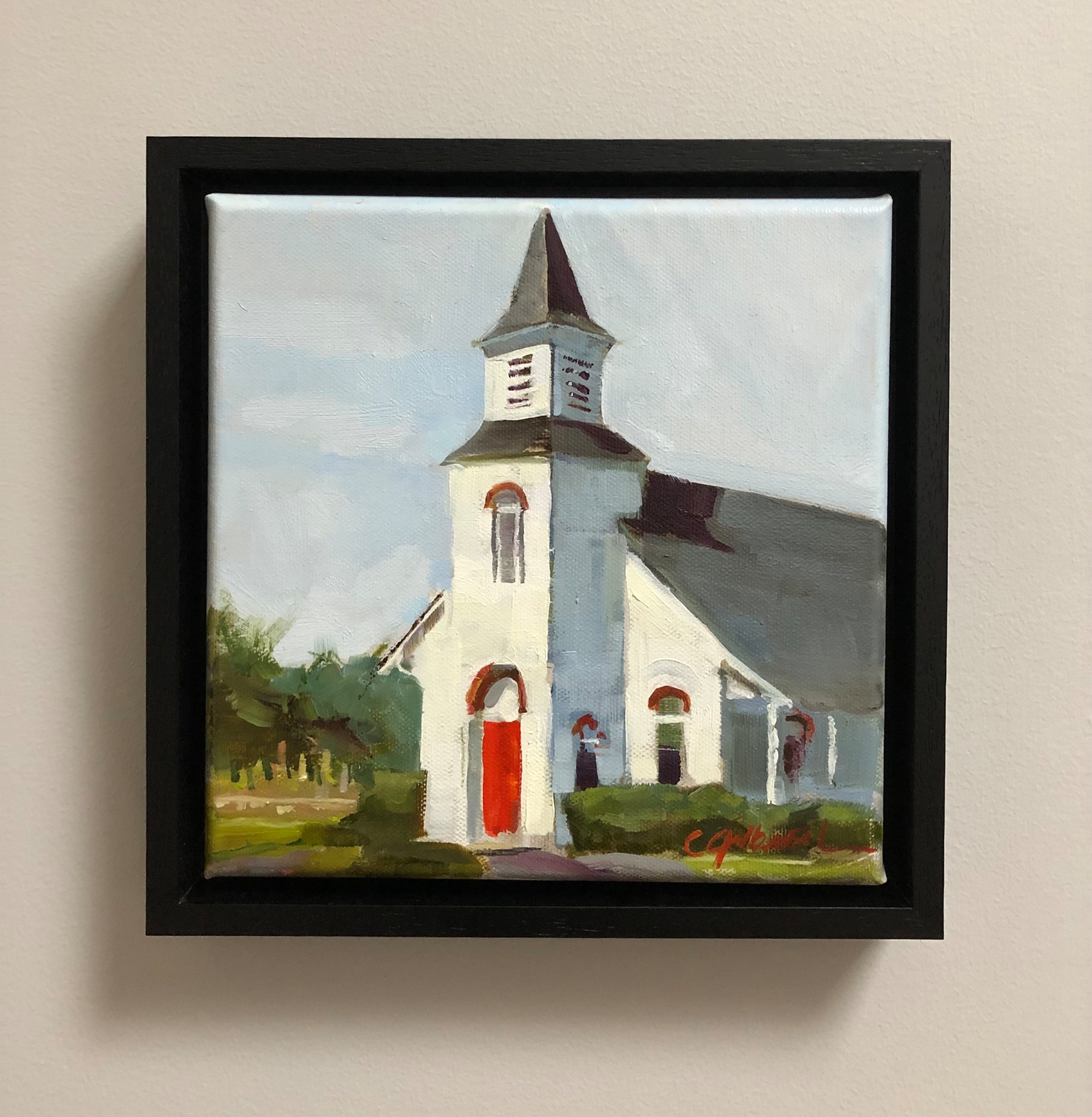 St. James Lutheran, Birdsboro PA  Image: Looking for stuff to paint in Geigertown. My husband had spied a graveyard of old trains, and heavy equipment. He scouts while out riding his bike. I liked the way the light was cast on the church. This is a Lutheran church.