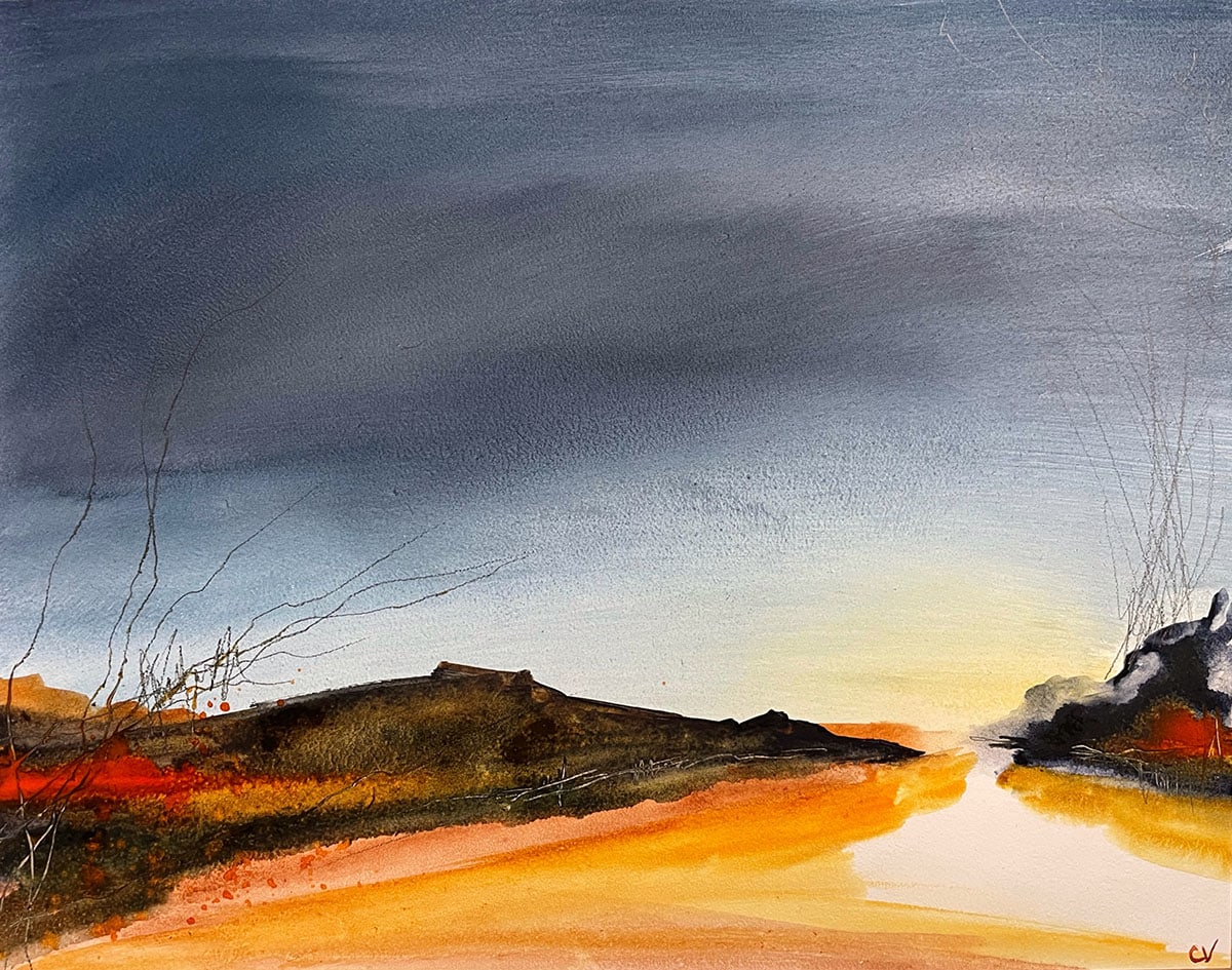 Watercolor, ink, and pencil on 14" x 11" x 2" cradled wood panel.