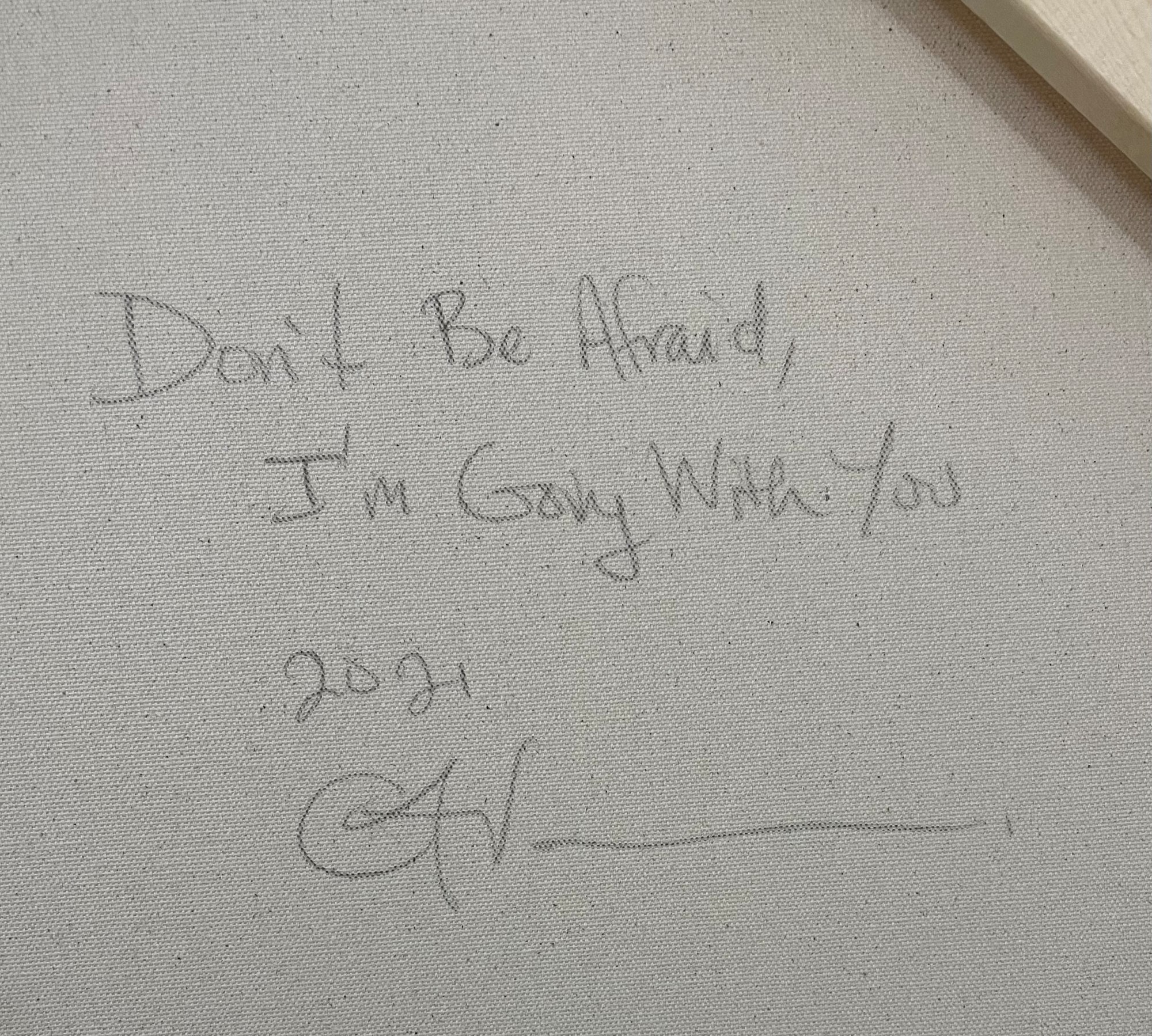 Acrylic, oil pastel, and graphite on 36” x 36”x 1.5” canvas.