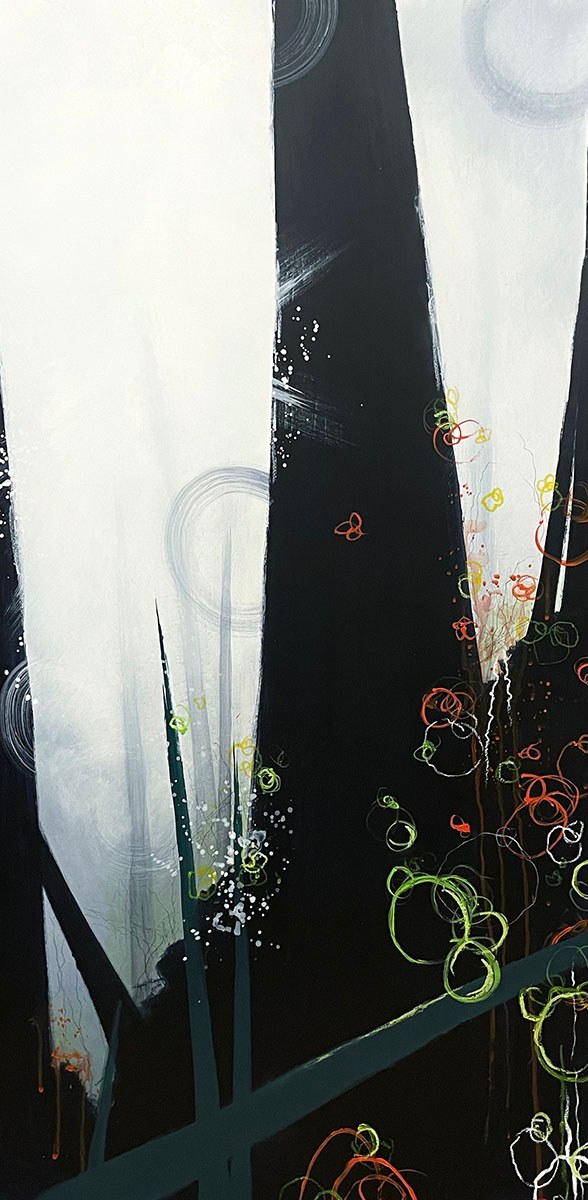 Mixed media on 18” x 36” x 7/8” cradled wood panel.