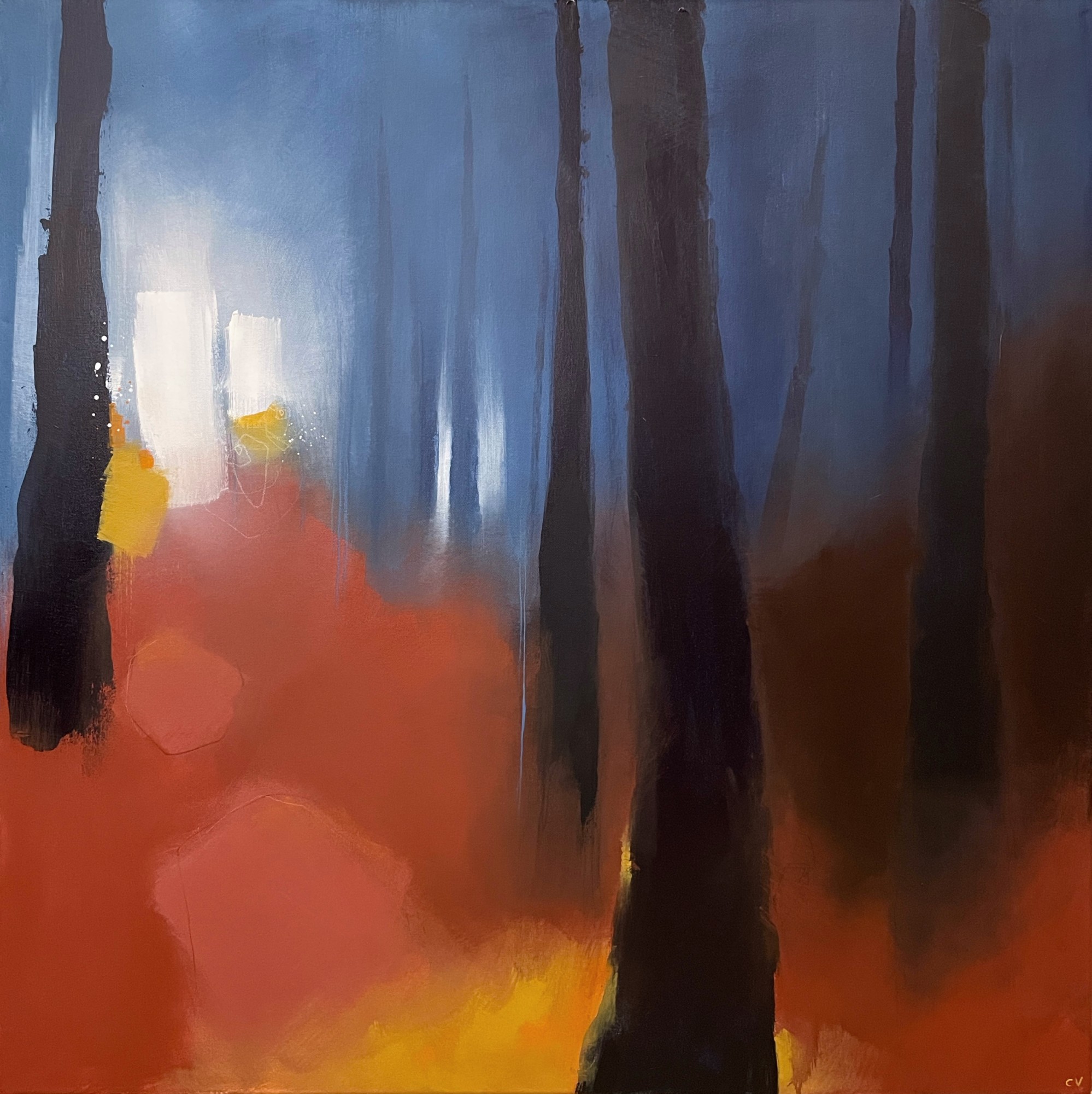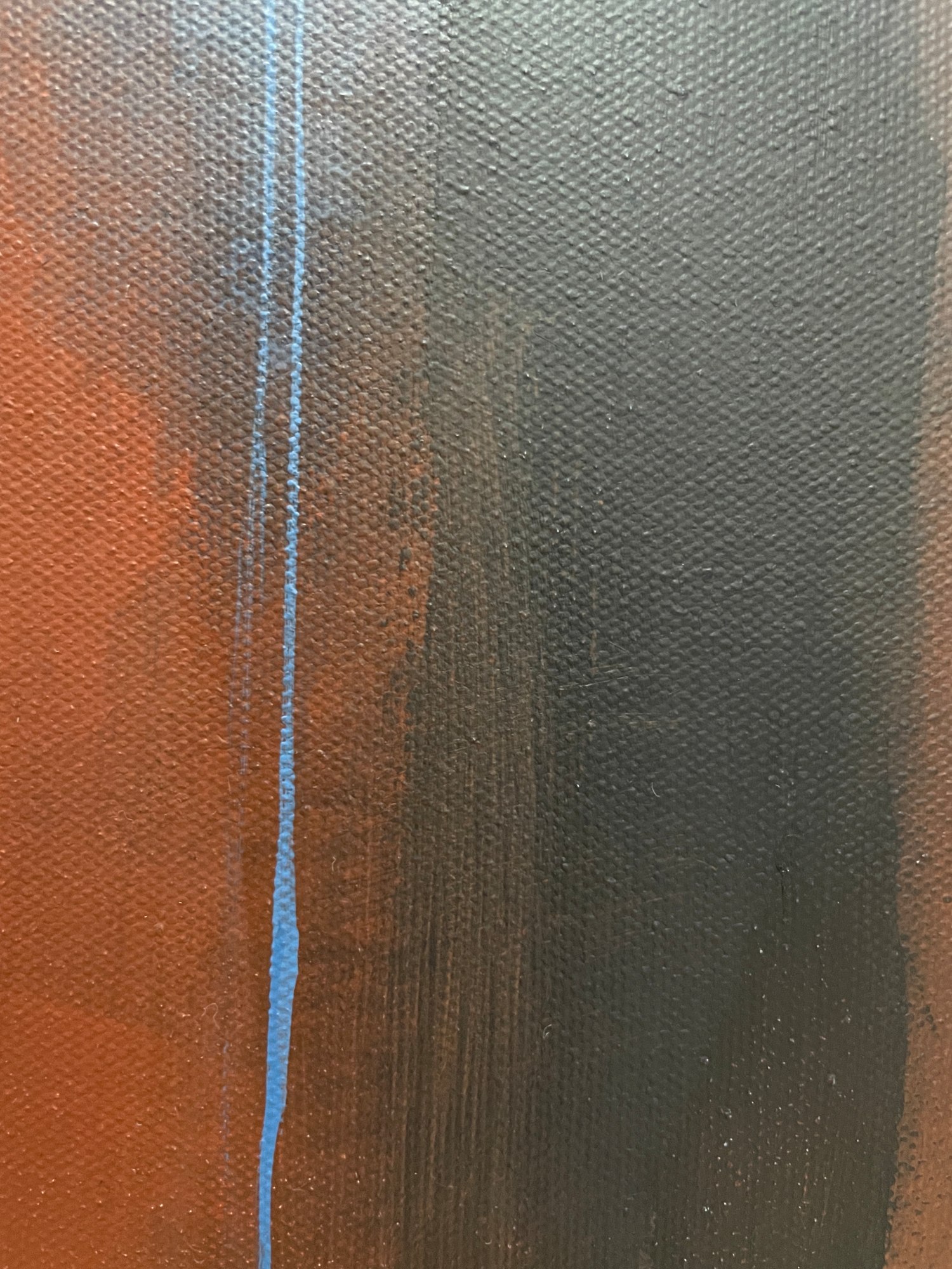 Acrylic, white charcoal, and graphite on 36” x 36” x 11/16” canvas, framed in a black wood float frame.
