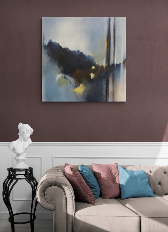 Mixed media on 36” x 36” x 1.5” canvas.