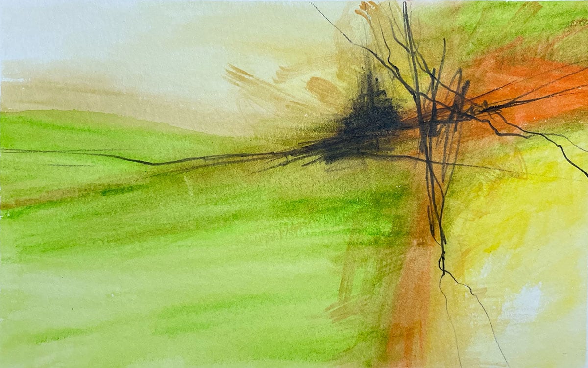 Ink pencil on 8.5" x 5.5" watercolor paper, mounted in a 14" x 11" mat.