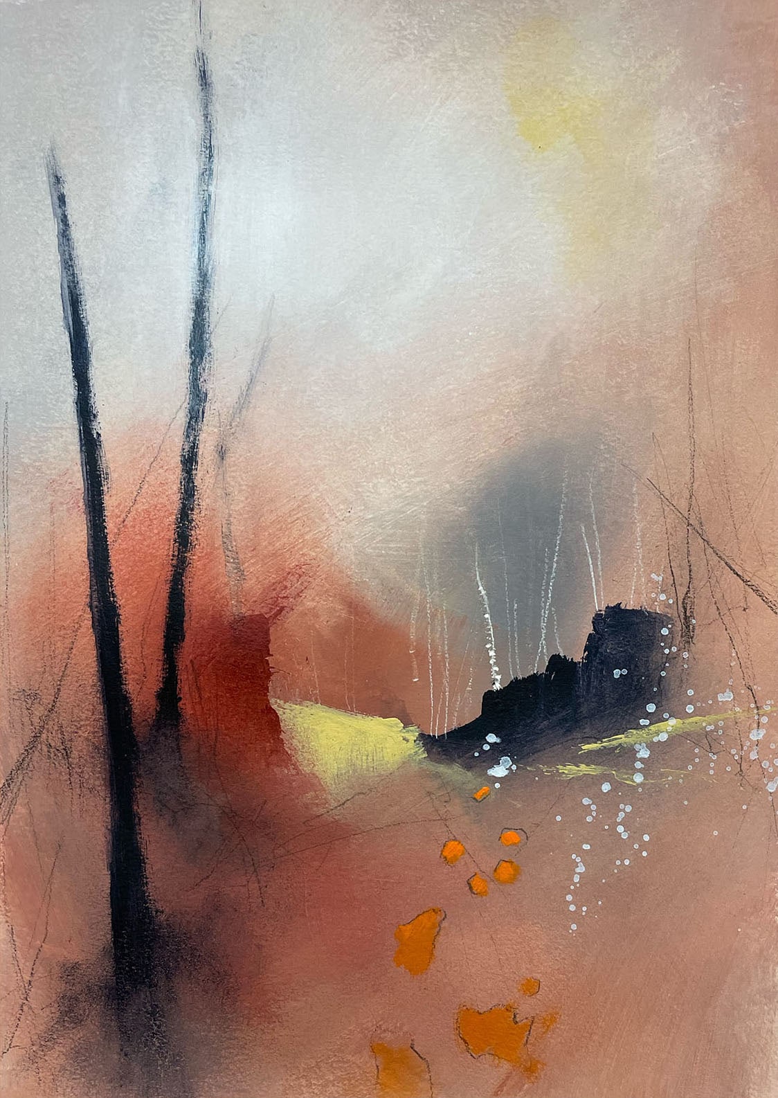 Mixed media on 11” x 15” watercolor paper.